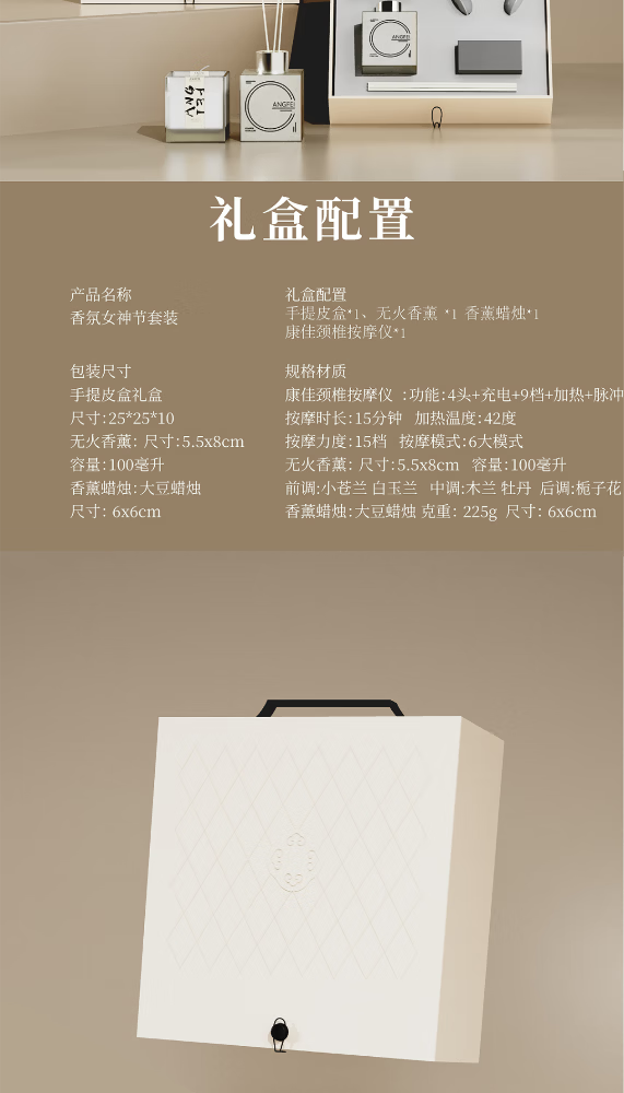 配置清单:手提皮盒*1、无火香薰 *1 香薰蜡烛*1 康佳颈椎按摩仪*1