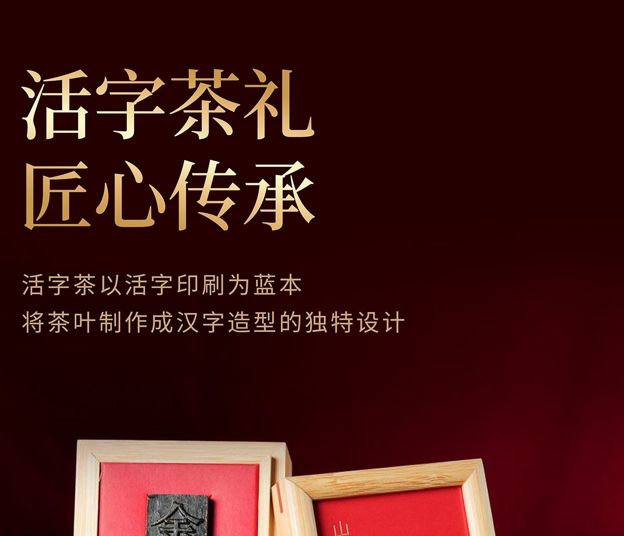 活字与茶叶的创意组合,一字一茶以字表意;高山料有趣茶,茶汤橙黄入口醇厚回甘;专属定制,让员工/客户感受到独一无二的心意