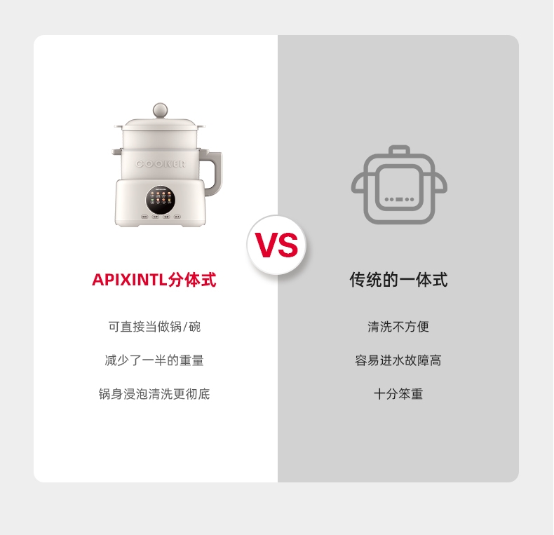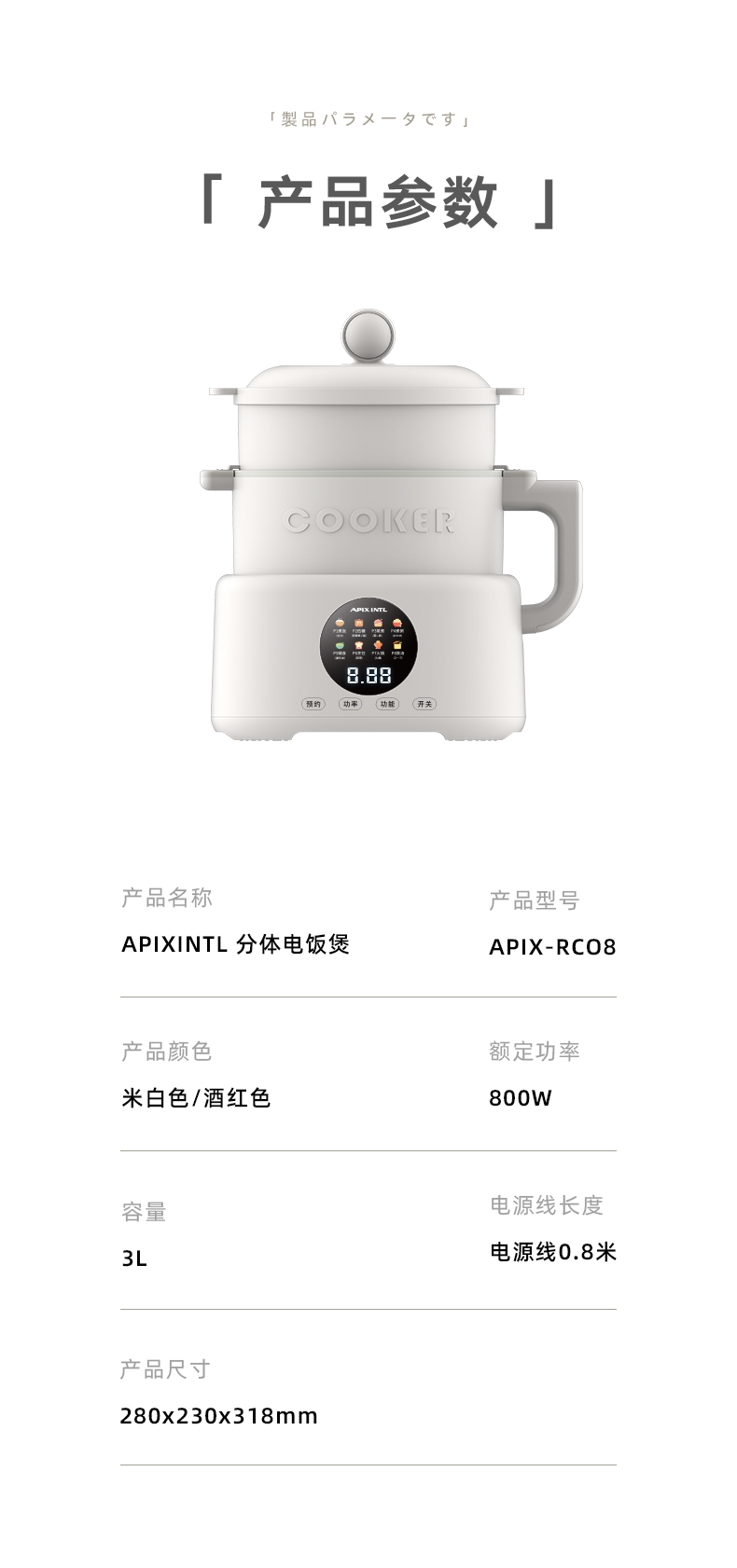 APIXINT 分体电饭煲多功能电煮锅3LAPIX-RCO8