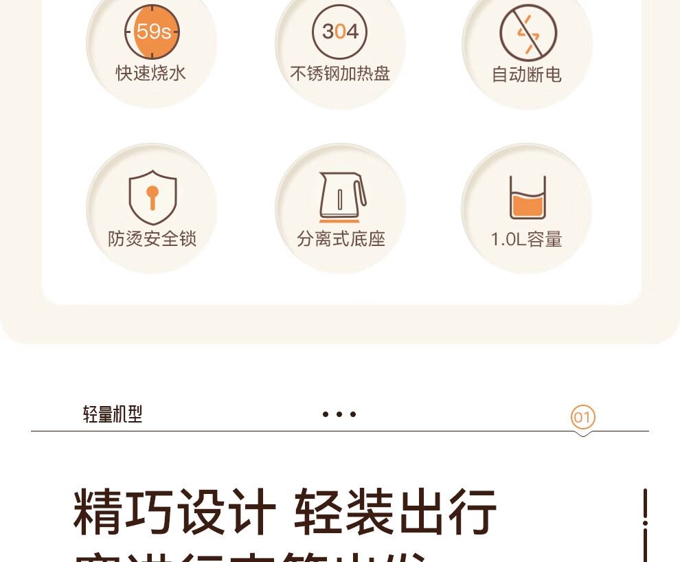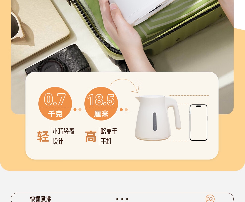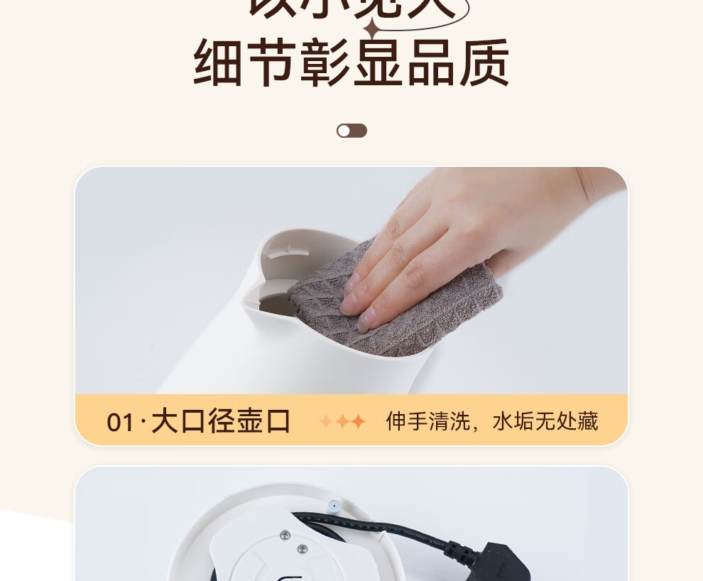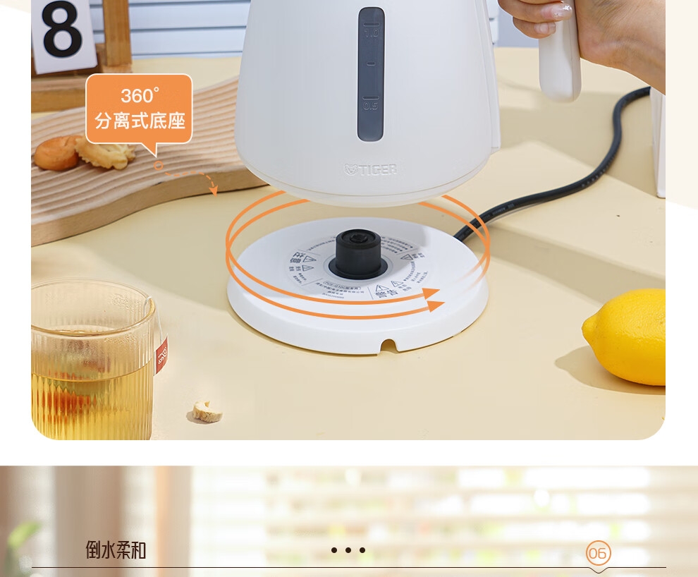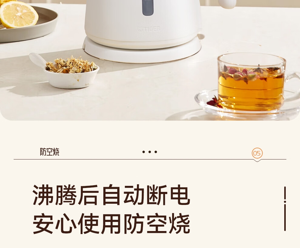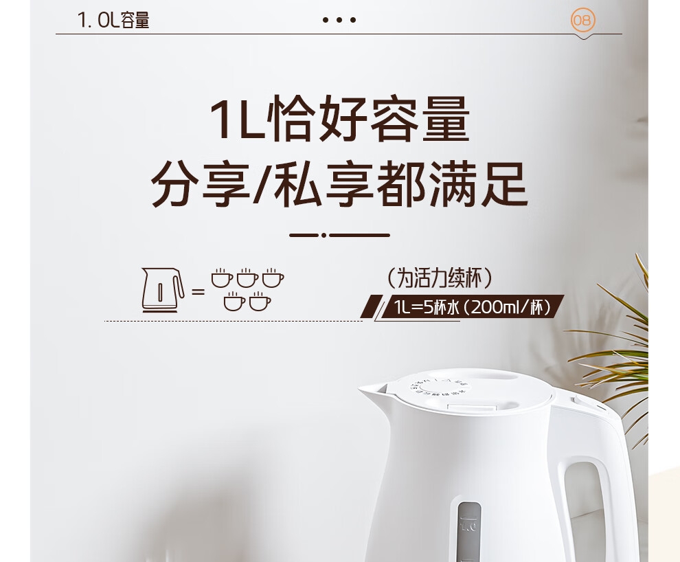 1300W火力全开鲜活好水不久等;一键出水锁定防止倾倒出水;一体式V型壶嘴 倾倒流畅不侧漏