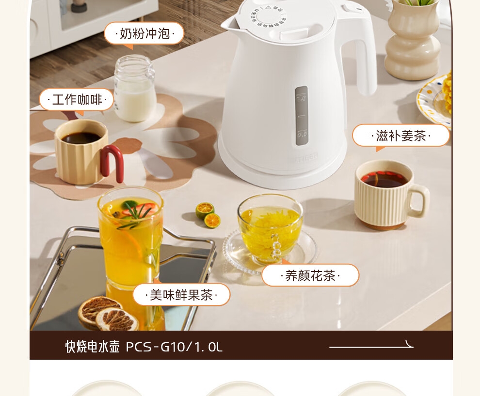 虎牌 轻量快烧迷你电水壶1LPCS-G10C