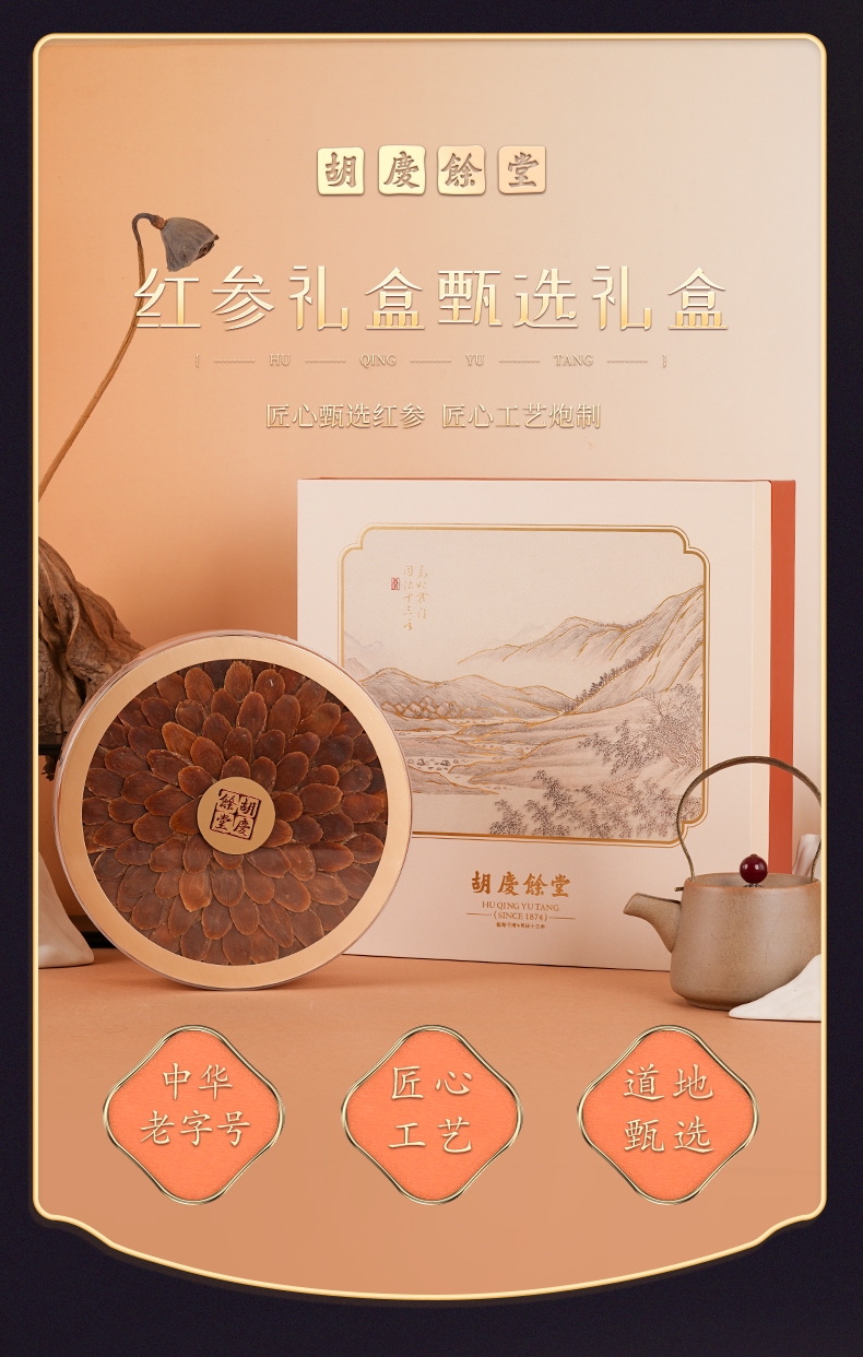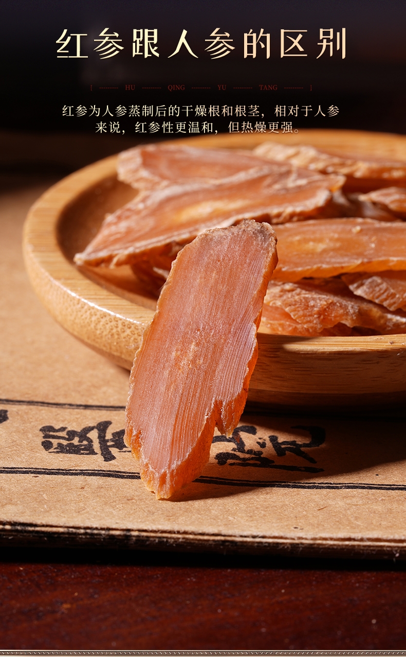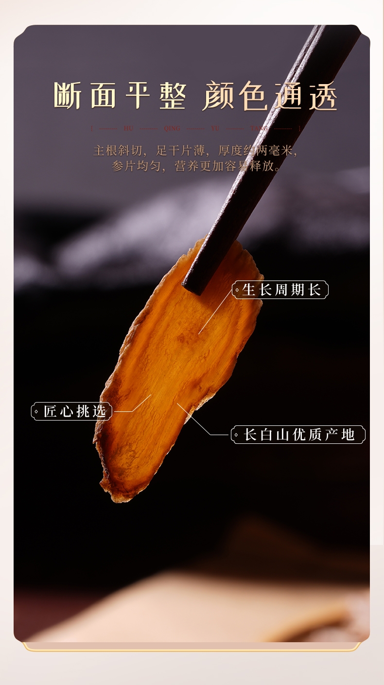 足龄红参,主根超大片;断面平整,颜色通透;礼盒装
