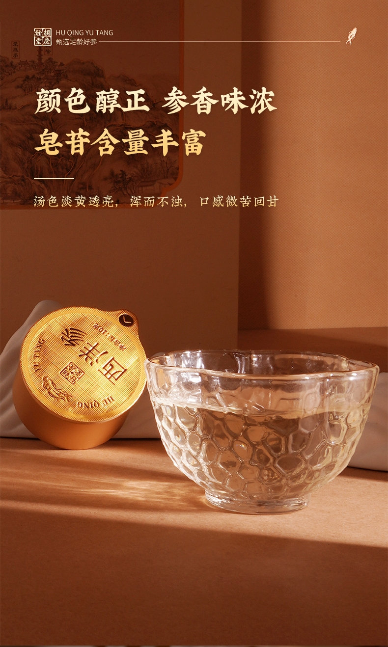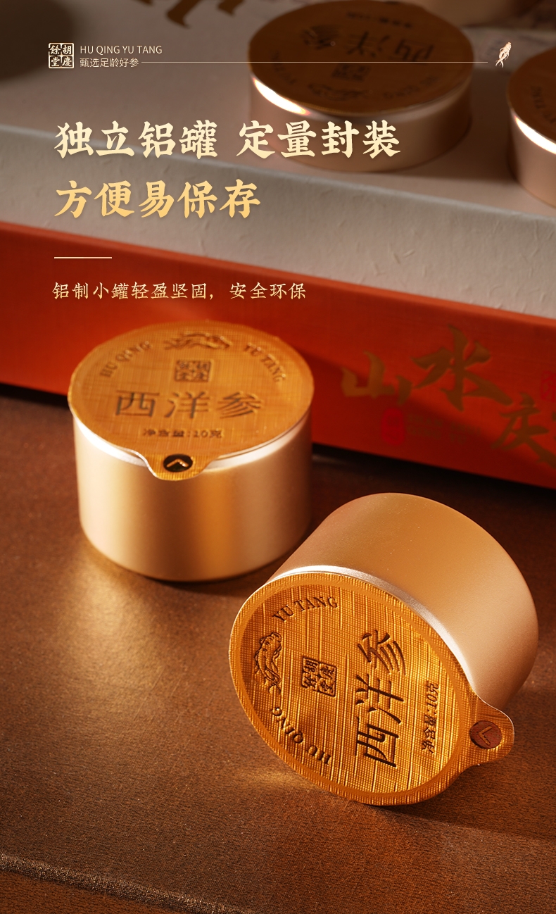 青山碧水,吉庆有余;好参天成,纹理清晰;独立铝罐,定量封装