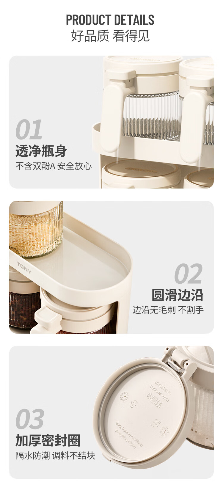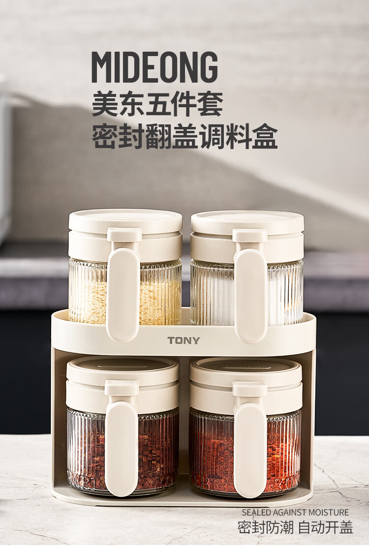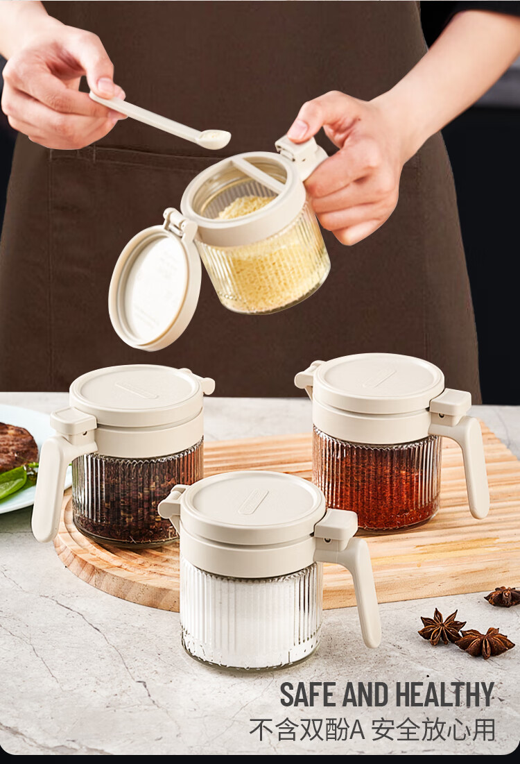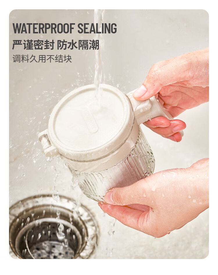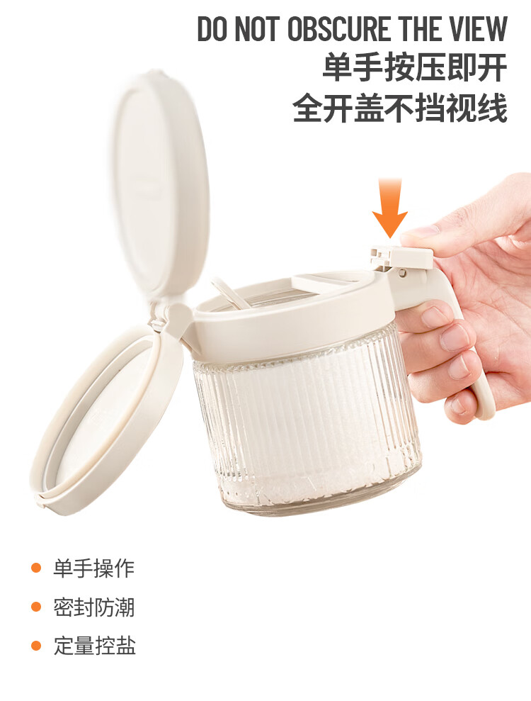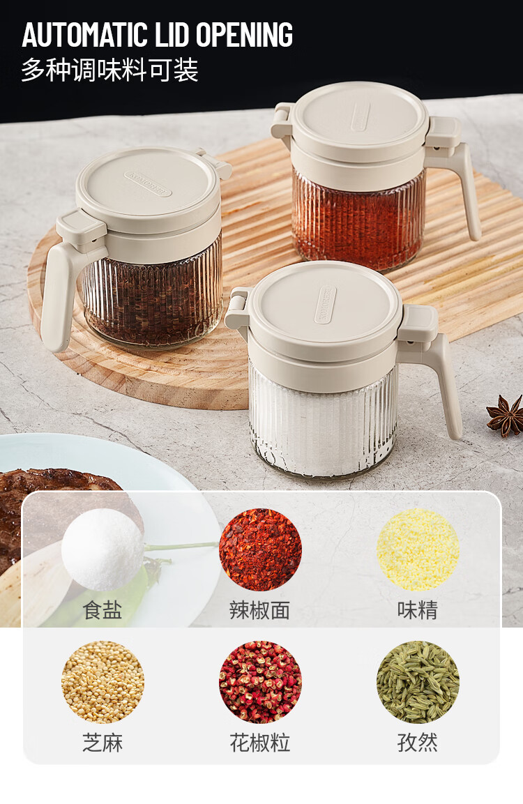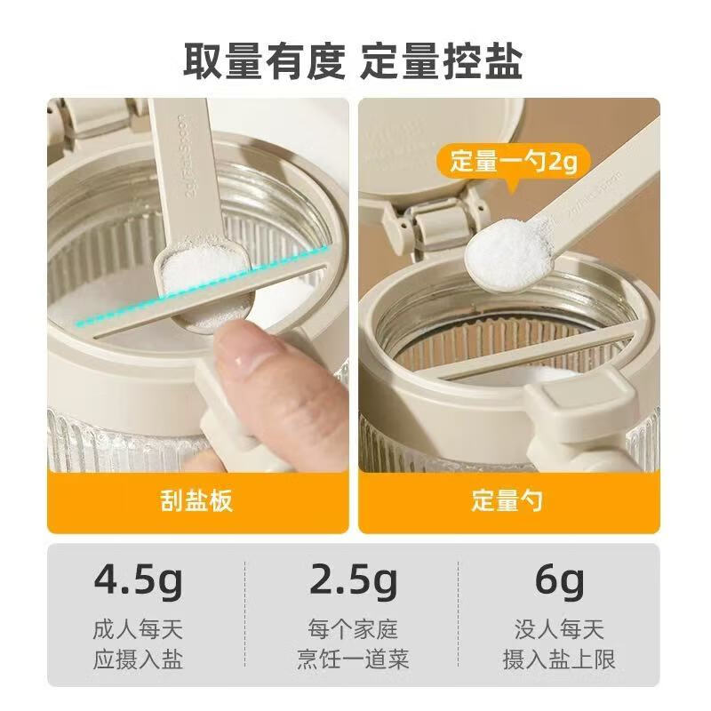 密封防尘;自动开盖;防滑勺柄,自带刮盐板