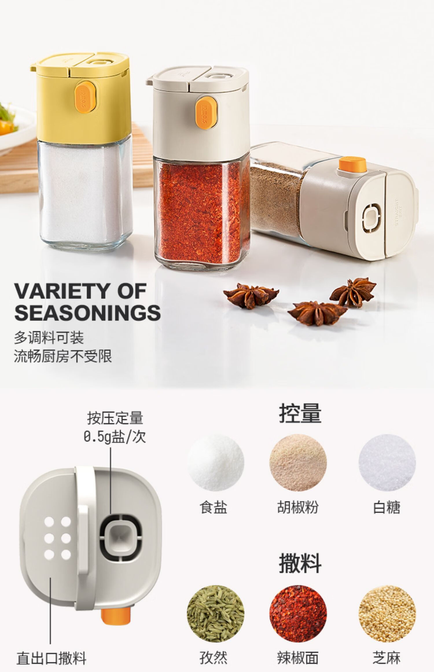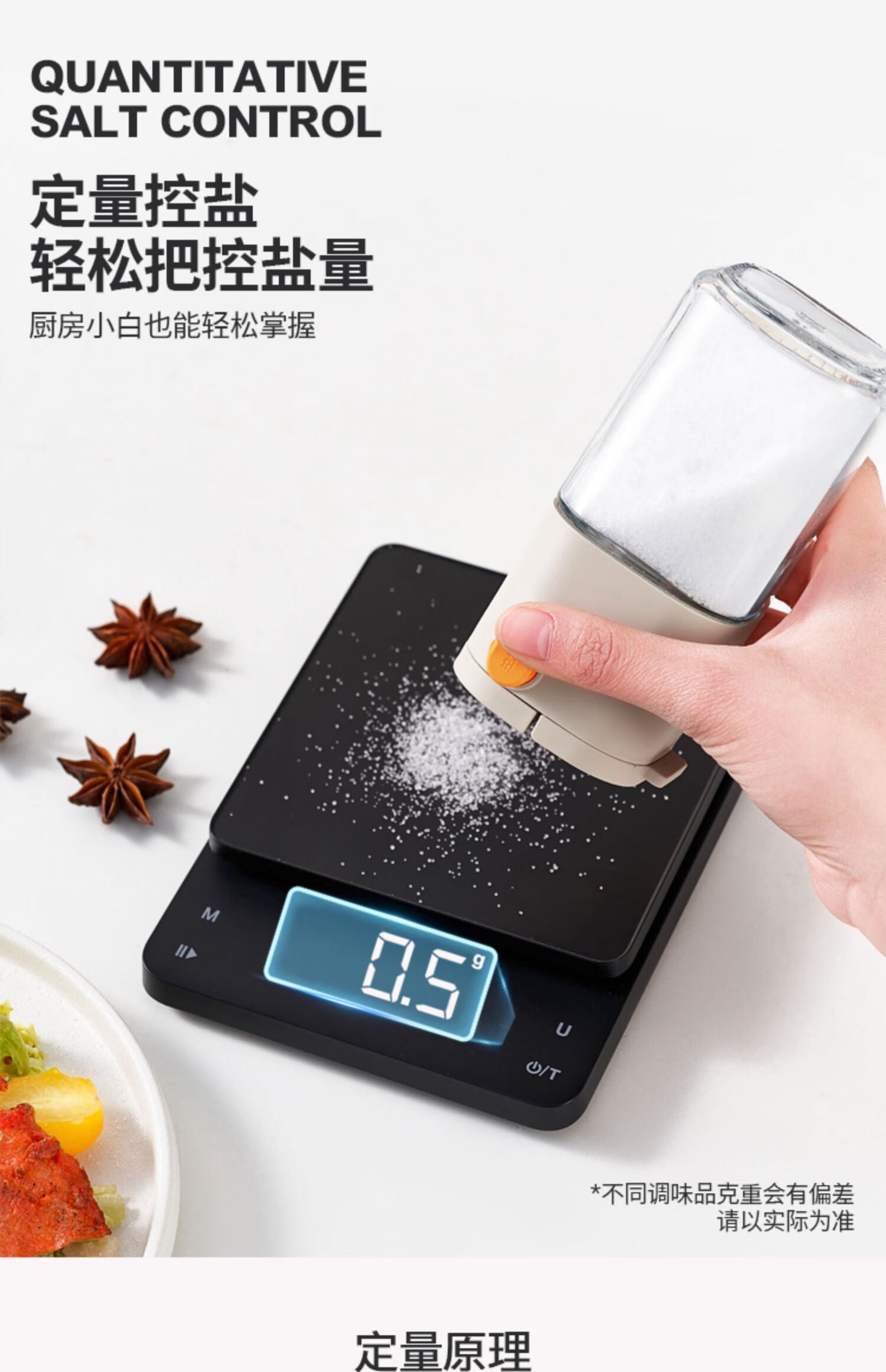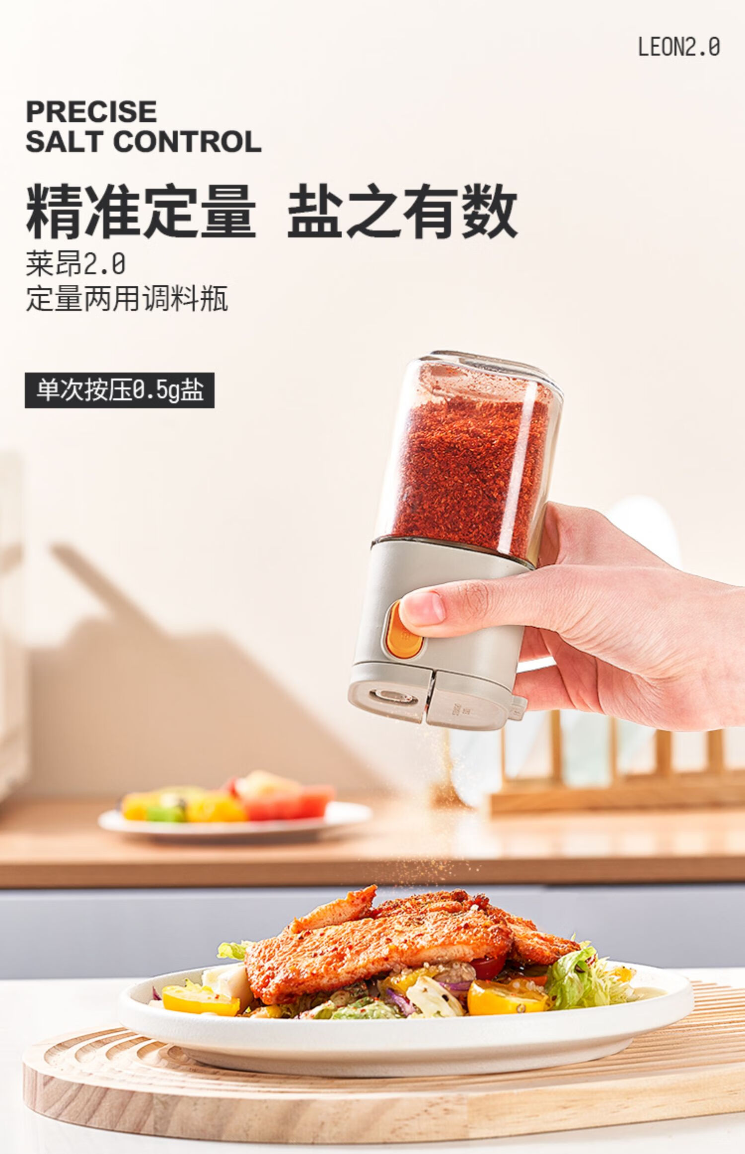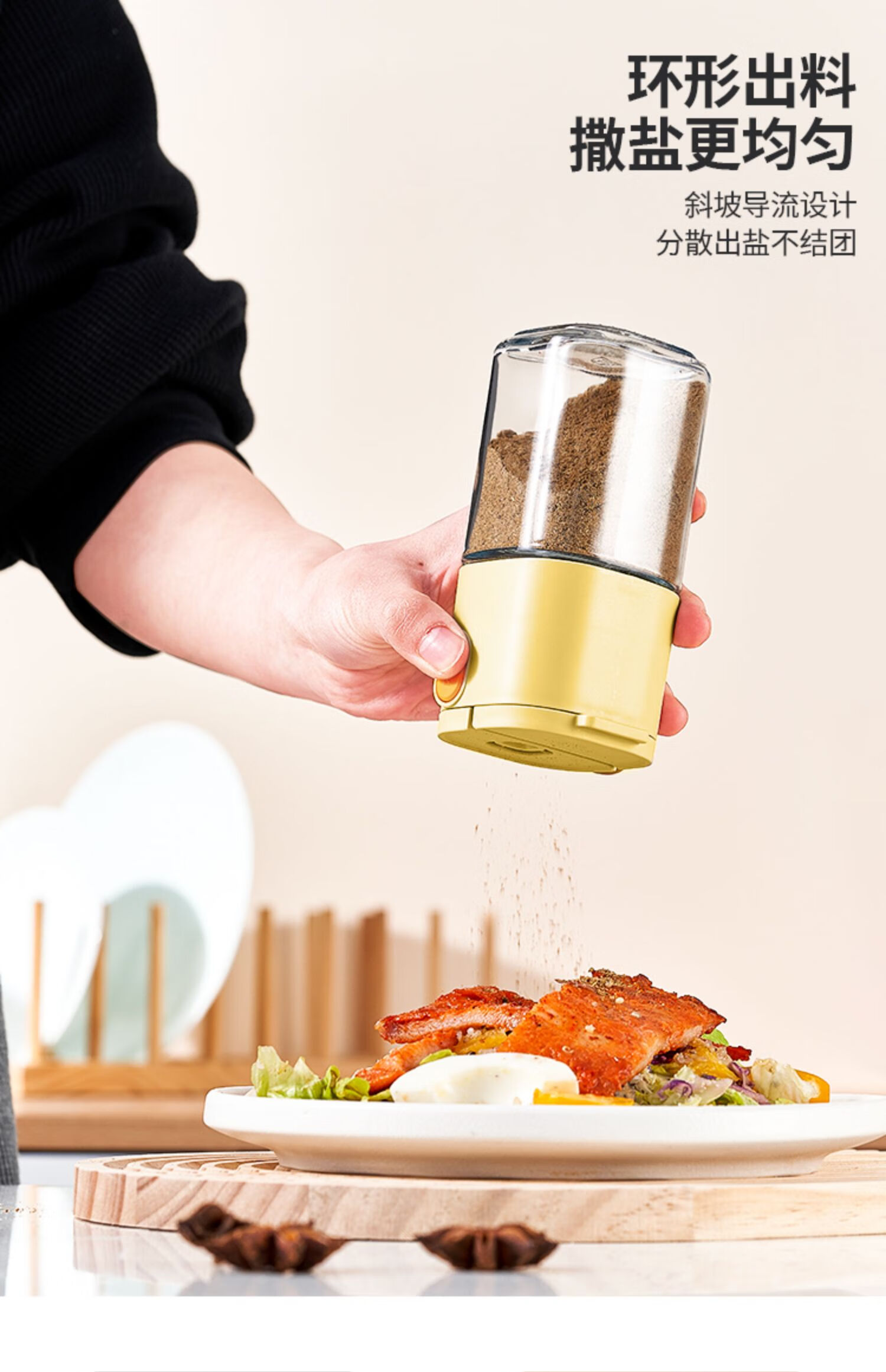 定量控盐;防尘密封;单手操作