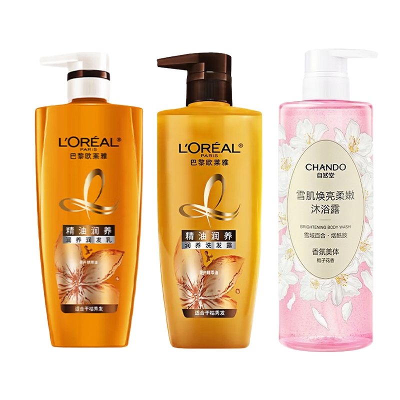 配置清单:1. 欧莱雅精油润养丰盈洗发水700ml 2. 欧莱雅精油润养顺滑护发素700ml 3. 自然堂焕亮雪肌沐浴露600ml 4. Sckoes诗寇丝抑菌皂310g 5. Sckoes诗寇丝APG超浓缩洗洁精505g 6. 小仓熊香氛洁厕液(蜜桃香)450g 7. 小仓熊马桶挂篮(单个装)50g 8. 立体玫瑰花贺卡(赠) 9. 精选精美礼盒-LH006
