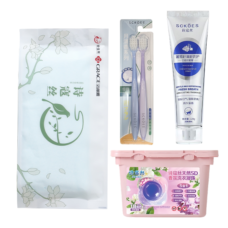 配置清单:1. 欧莱雅精油润养丰盈洗发水700ml 2. 欧莱雅精油润养顺滑护发素700ml 3. 自然堂焕亮雪肌沐浴露600ml 4. 洁丽雅&诗寇丝臻品长绒棉毛巾(颜色随机)70g 5. Sckoes诗寇丝细毛牙刷双支装 6. Sckoes诗寇丝葡萄籽清新防护牙膏120g 7. Sckoes诗寇丝天然5D香氛洗衣凝珠18颗 8. Sckoes诗寇丝APG超浓缩洗洁精505g 9. SukGarden蔬果园蓝风软洗衣液1kg 10. 蔬果园茉莉白山茶香氛内衣洗衣液300g 11. SukGarden蔬果园茶香泡泡洗手液500ml 12. 小仓熊香氛洁厕液(蜜桃香)450g 13. 小仓熊马桶挂篮(单个装)50g 14. 立体玫瑰花贺卡(赠) 15. 精选精美礼盒-LH004