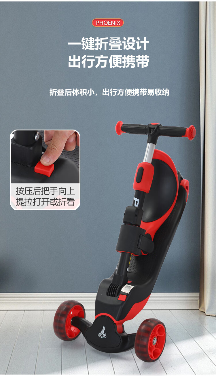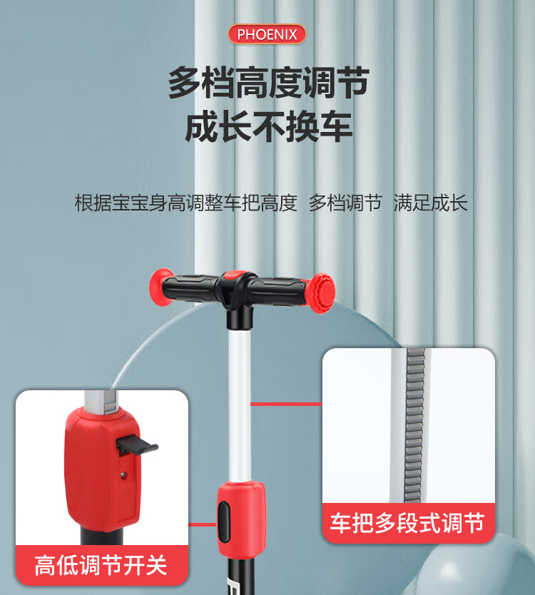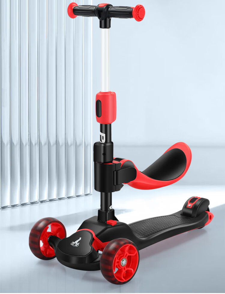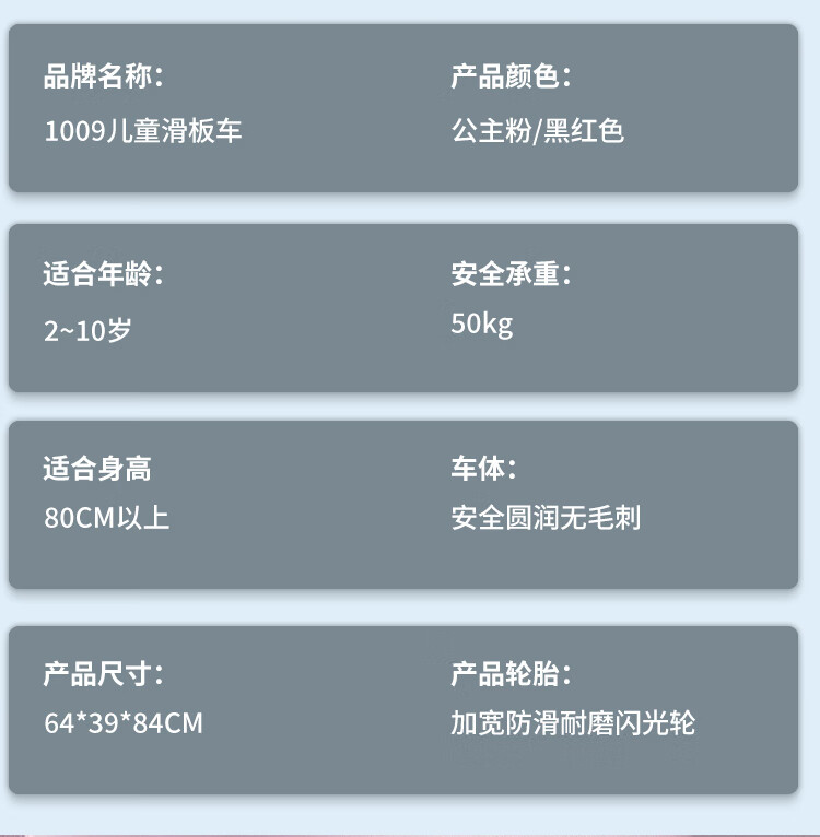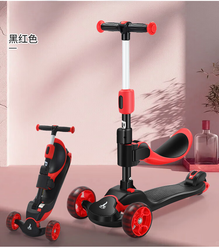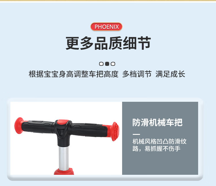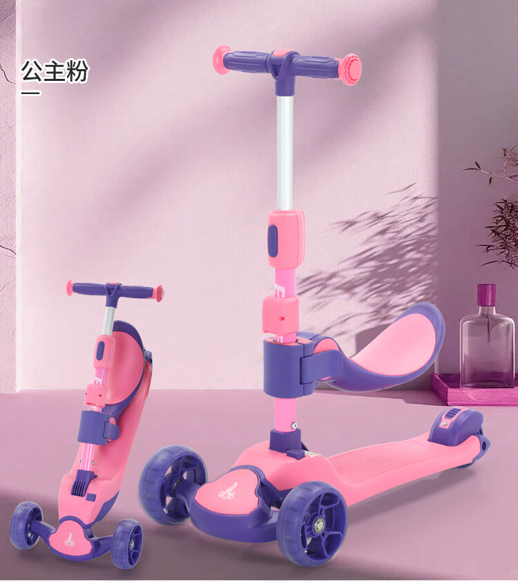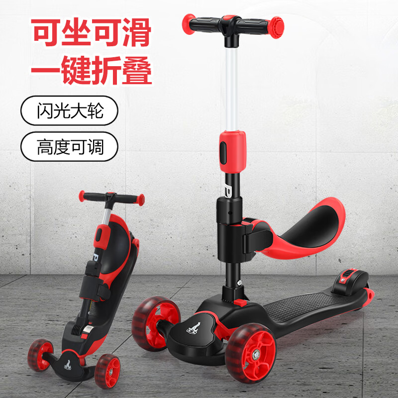 高承重,用得久,可以从小玩到大的滑板车;防抱死点刹系统赛车级品质;无需充电,一滑即亮,速度越快灯光越亮