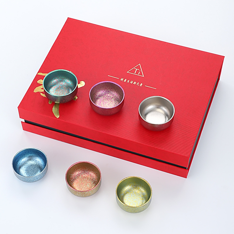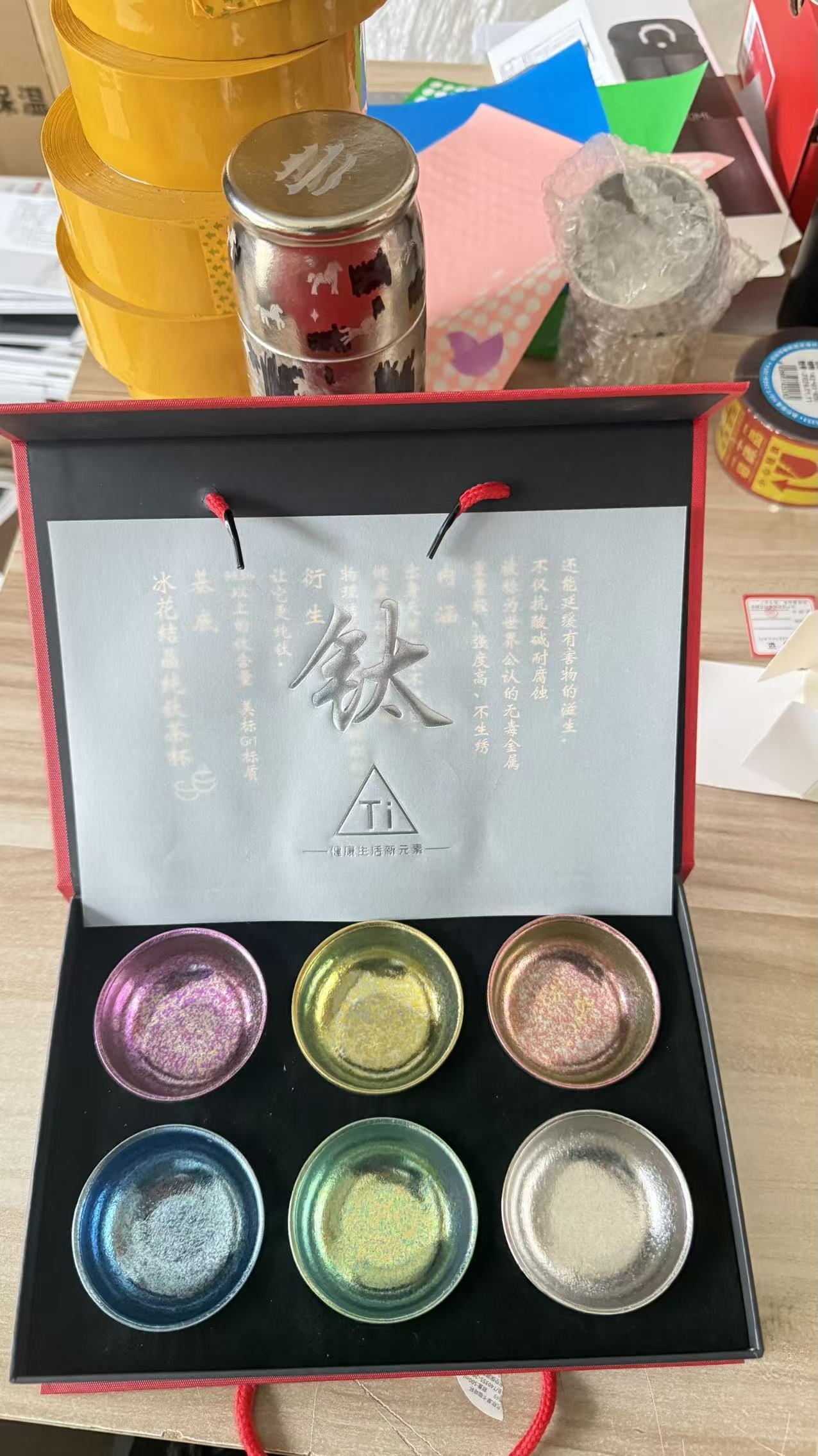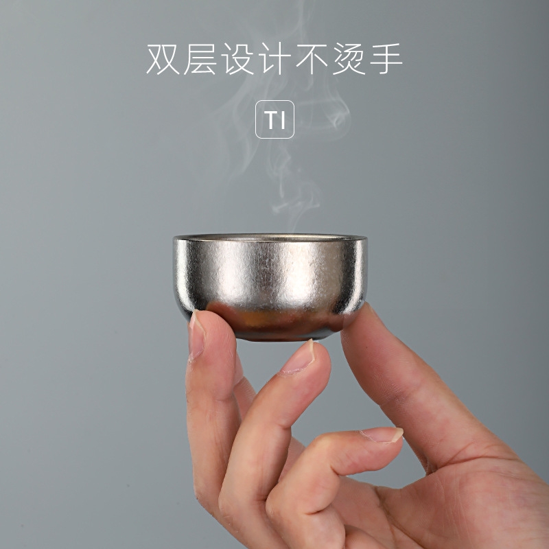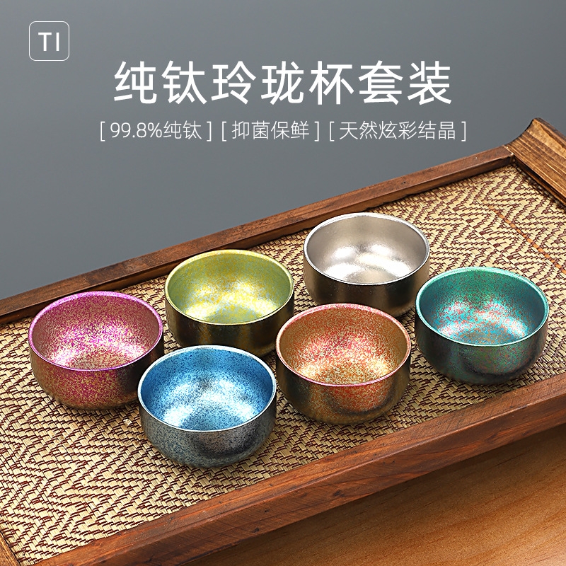 骏天 纯钛茶杯茶具冰花彩色双层礼品DG-Ti0010