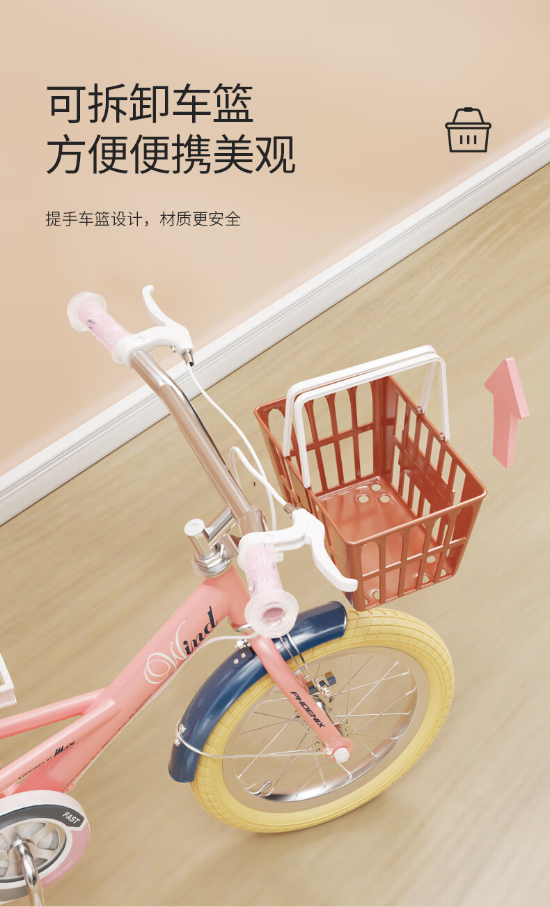 优质环保烤漆 ,时尚贴花;加厚塑料车筐,高强钢连体车把;高弹舒适连体鞍座