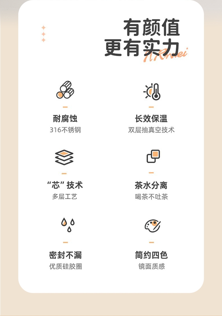 好售后,是一份踏实的守护, 用心滋养每一份期待;316医用级不锈钢—抗腐蚀、无异味、茶饮放心装;礼品的首选,既有档次又实用,送亲友非常合适