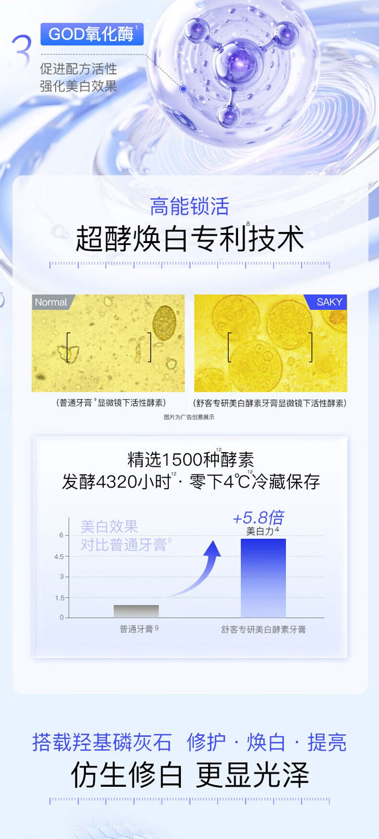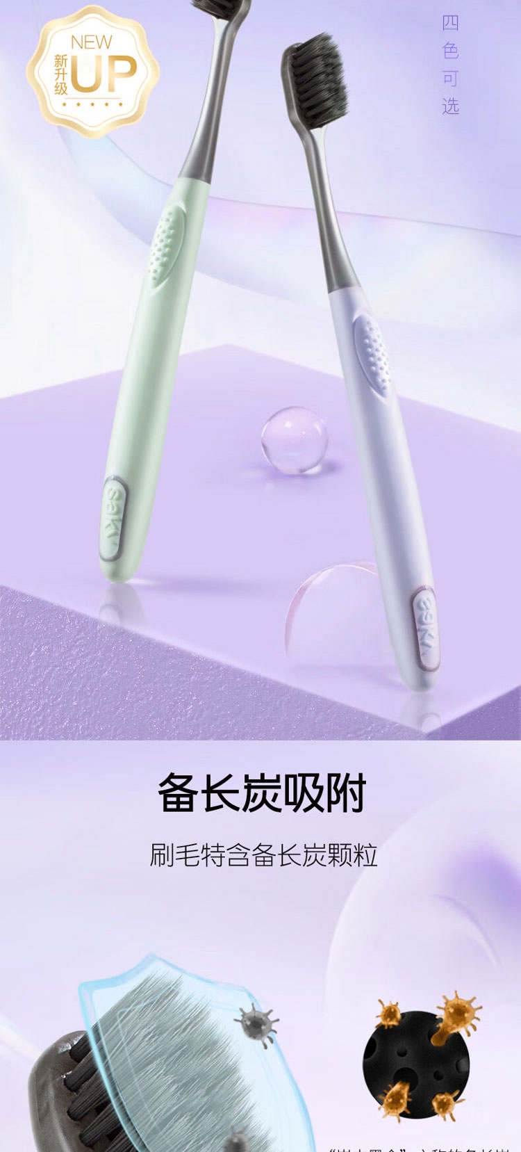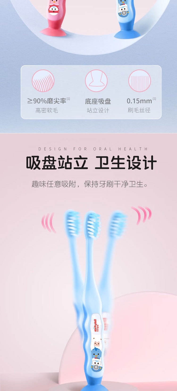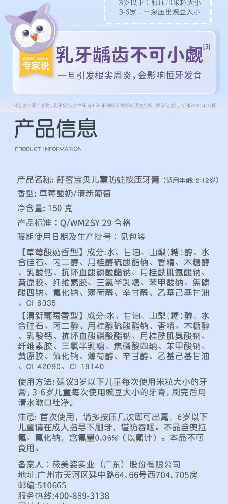 甄选法国天然酵素&谷物提亮精华,温和去渍;深层洁净,干爽清新:特含备长炭颗粒,令刷毛干爽洁净;专为儿童研发防蛀牙膏,150g按压式设计,防蛀护齿;舒客宝贝护齿牙刷,柔软刷毛呵护牙龈,小巧刷头深入清