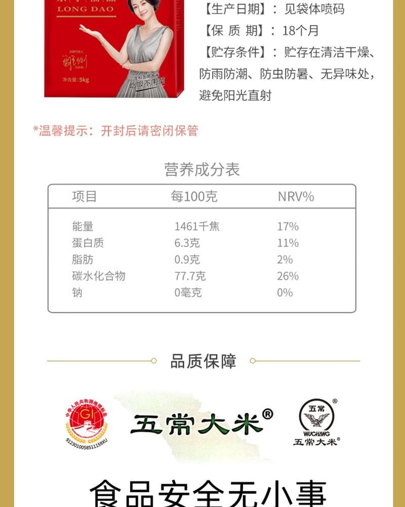 龙稻 京享福品五常大米5kg