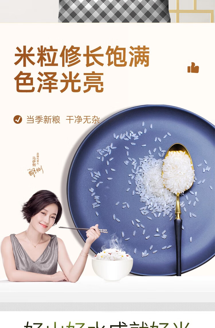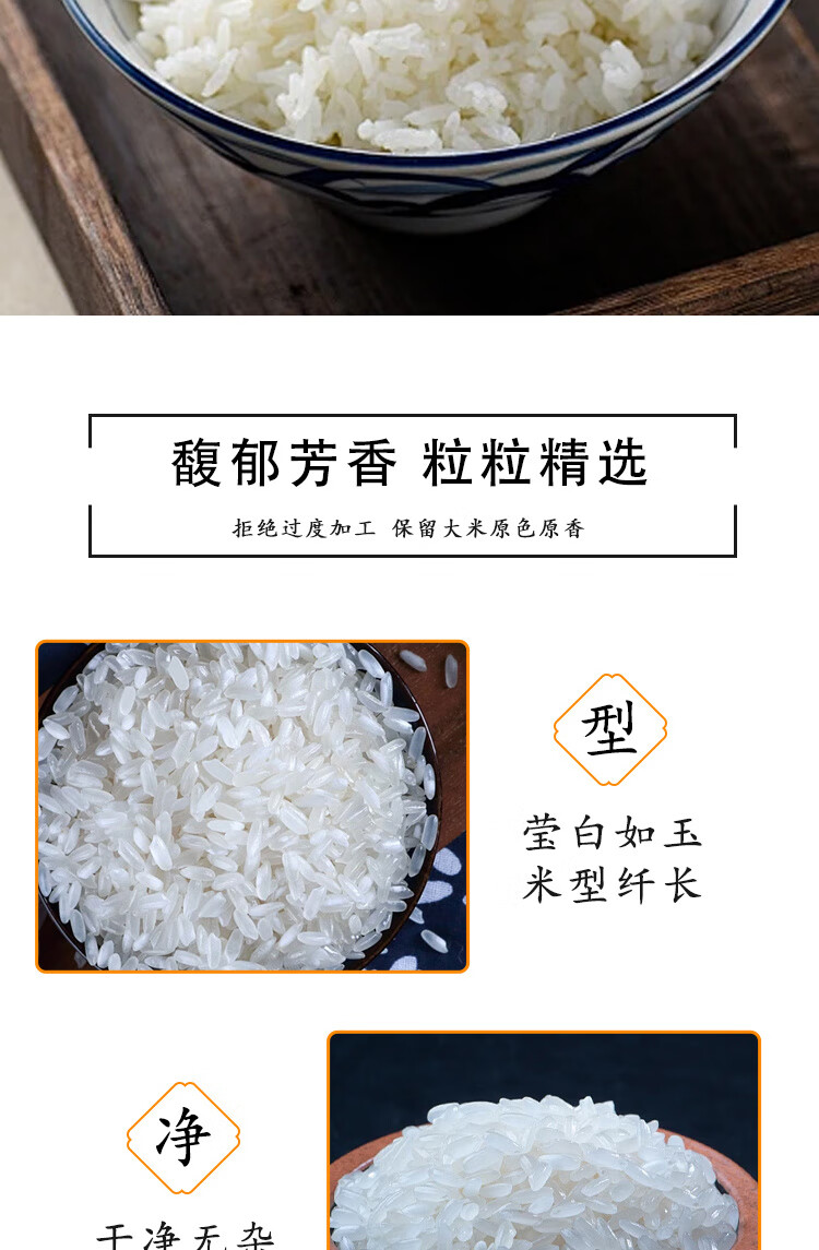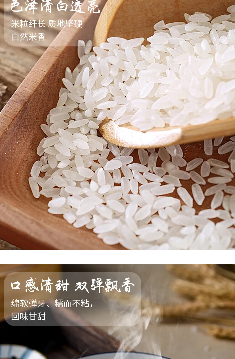 米粒修长饱满;色泽光亮;质地坚硬 自然米香
