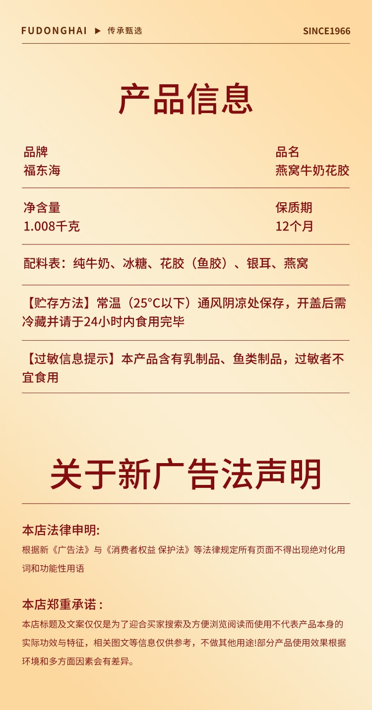 福东海 燕窝牛奶花胶1008克