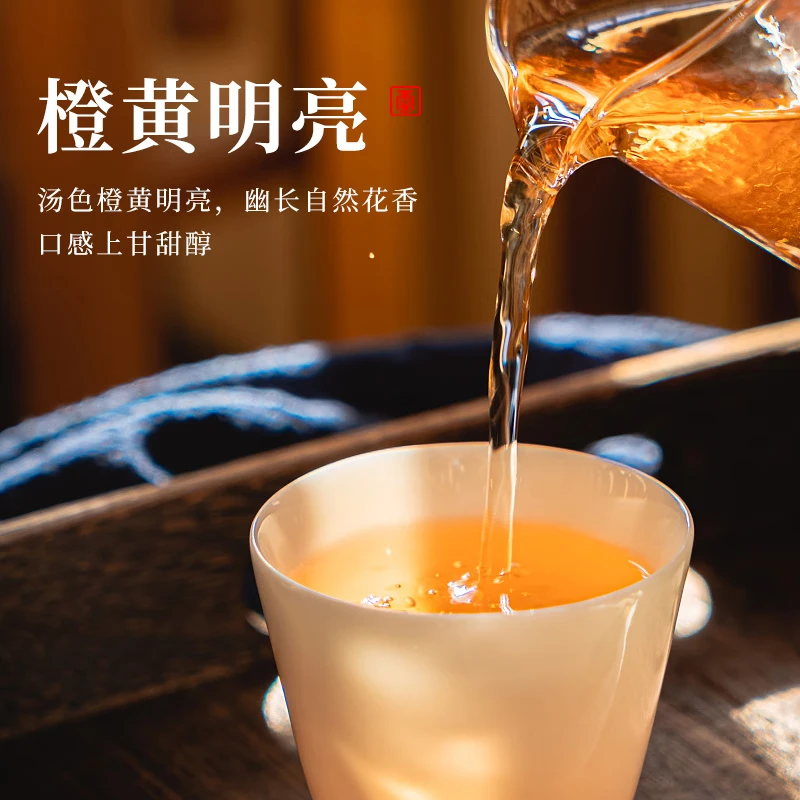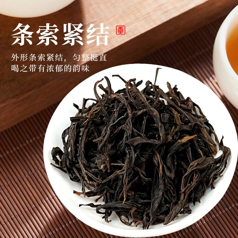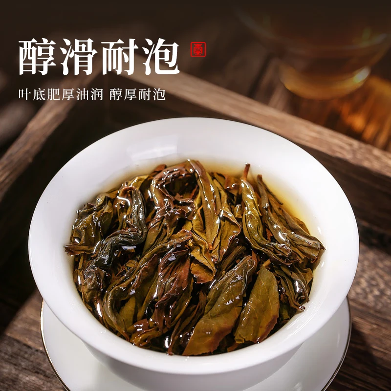 干茶即带清雅栀子香,花香、果香、蜜香交织;入口清甜瞬化岩韵舌底如含蜜露,持久回甘;条索紧结壮直,肥硕匀整