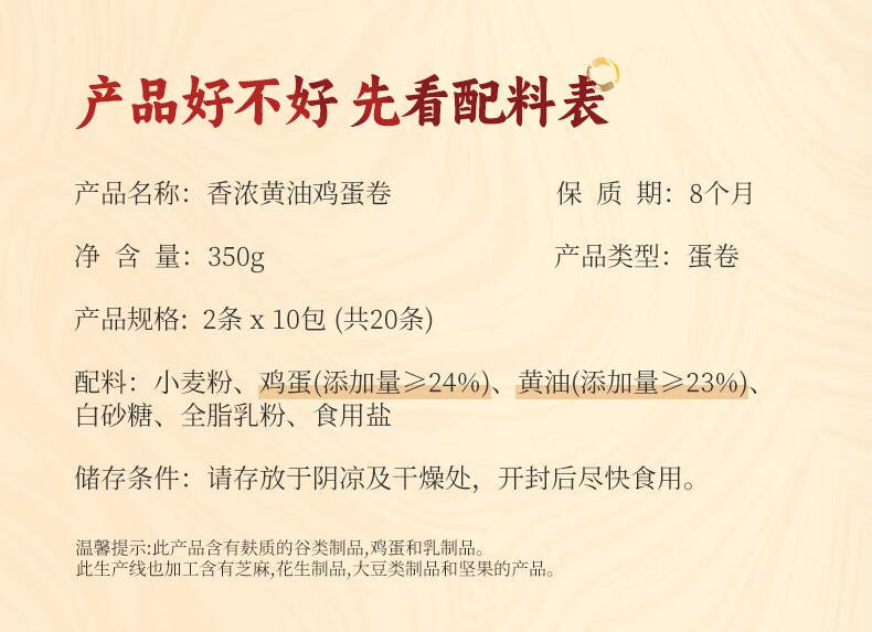 回未 香浓黄油鸡蛋卷350g