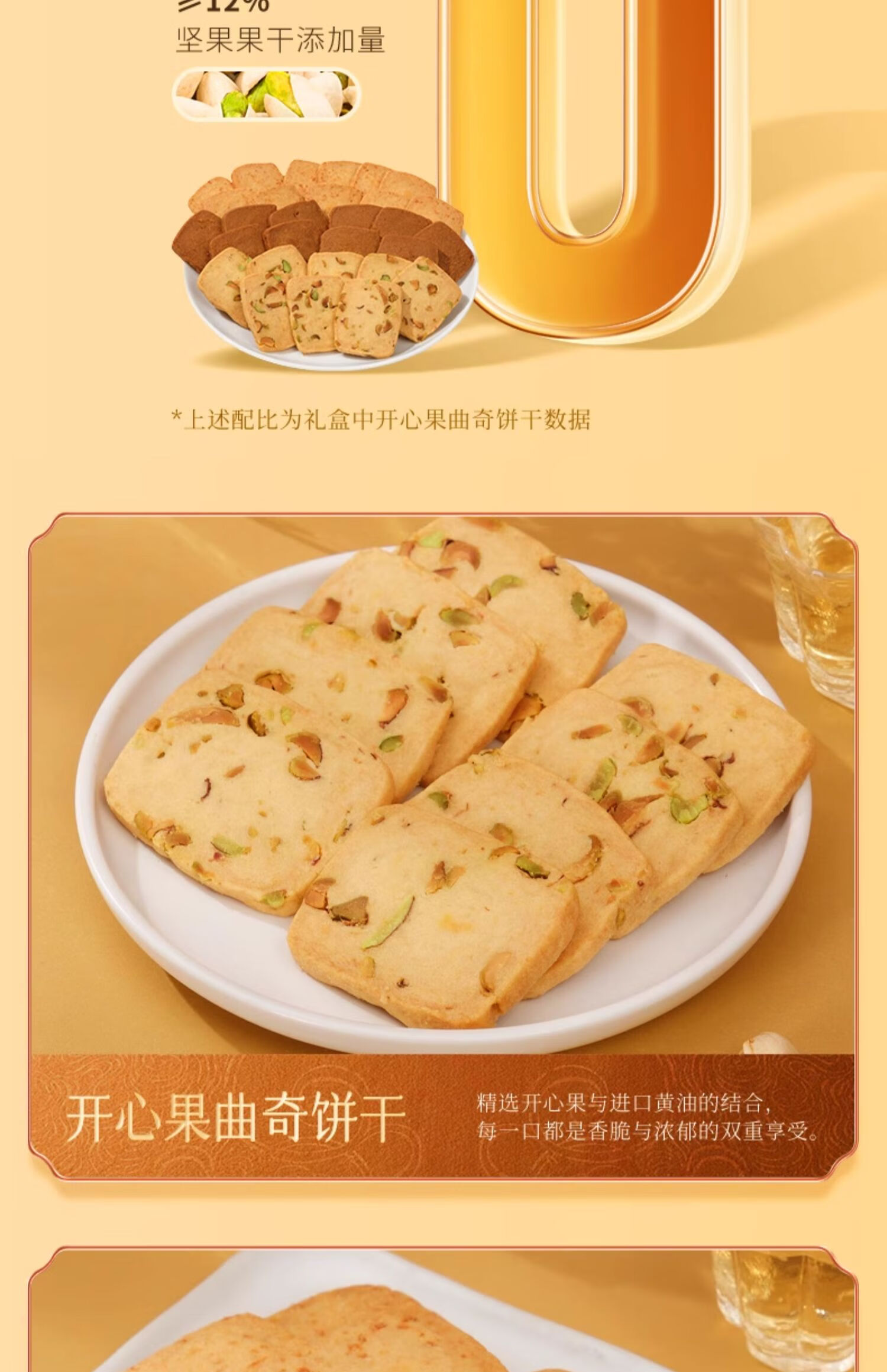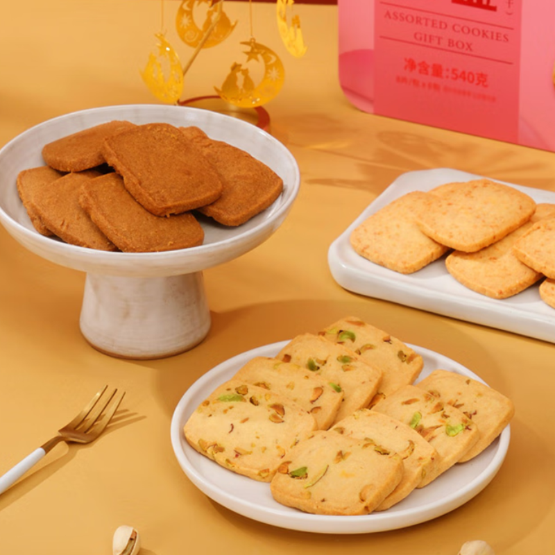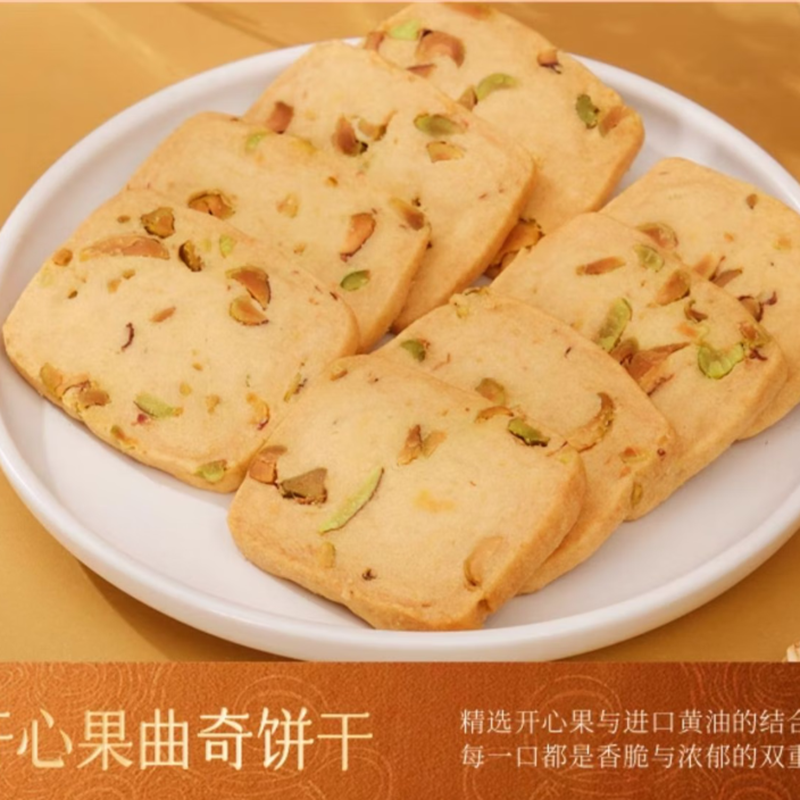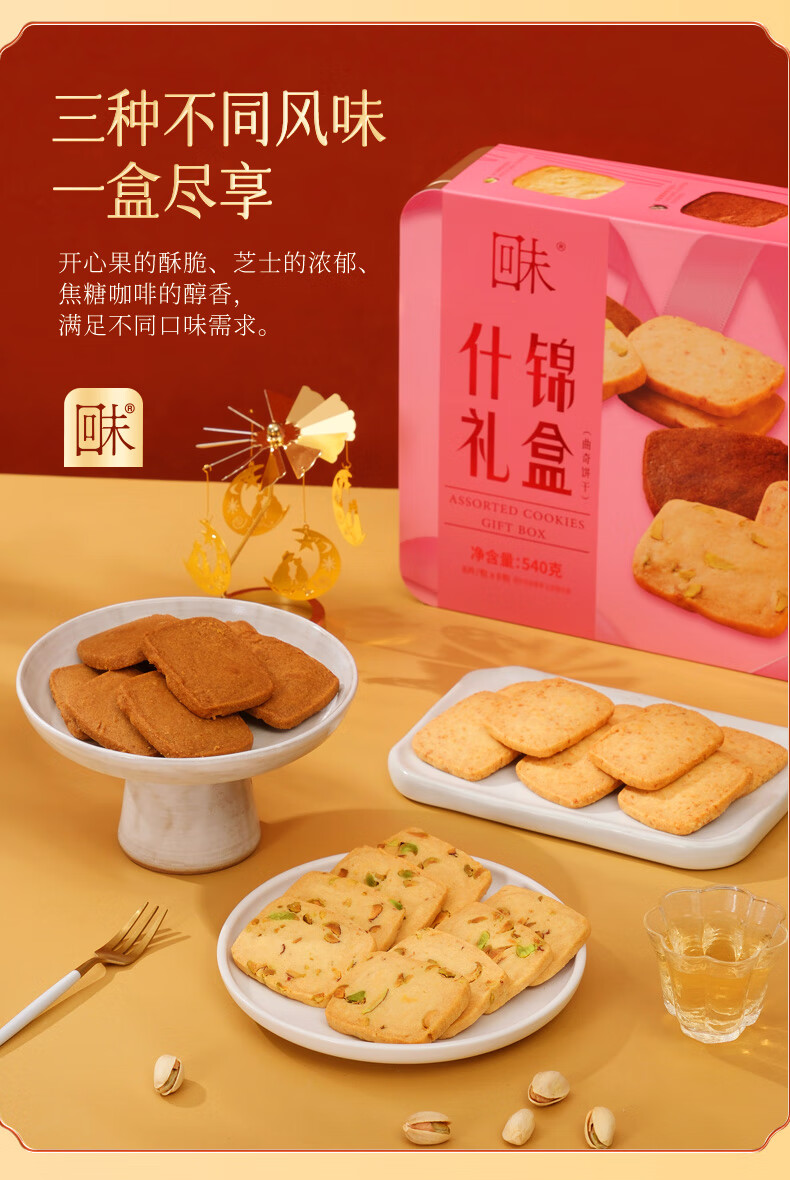 三种不同风味,一盒尽享;严选优质食材,坚持传统工艺;精选开心果与进口黄油的结合