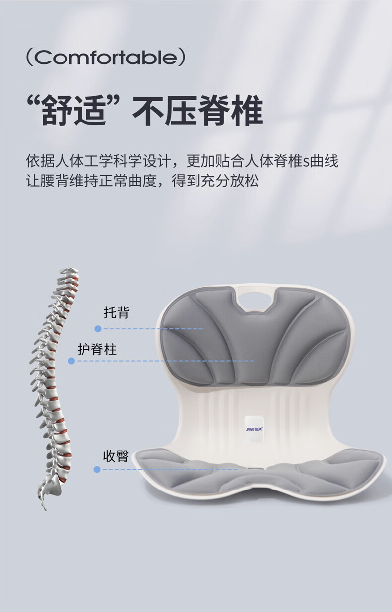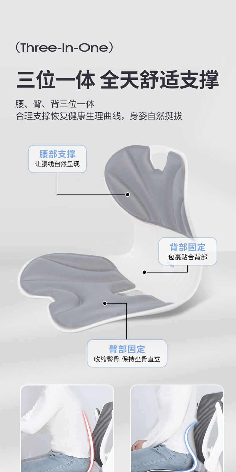 人体工学环抱设计,无缝贴合腰部曲线;可折叠设计收纳方便,不占空间;挺拔坐姿,塑性护腰