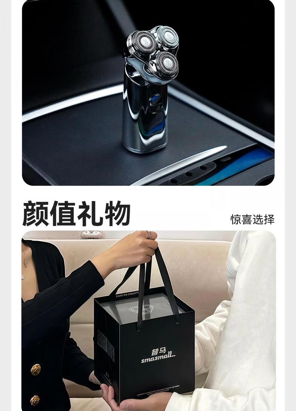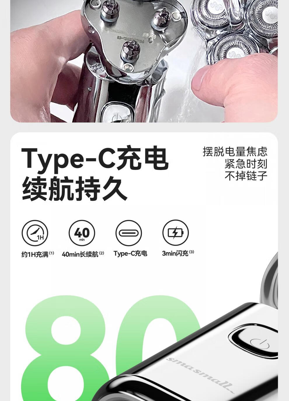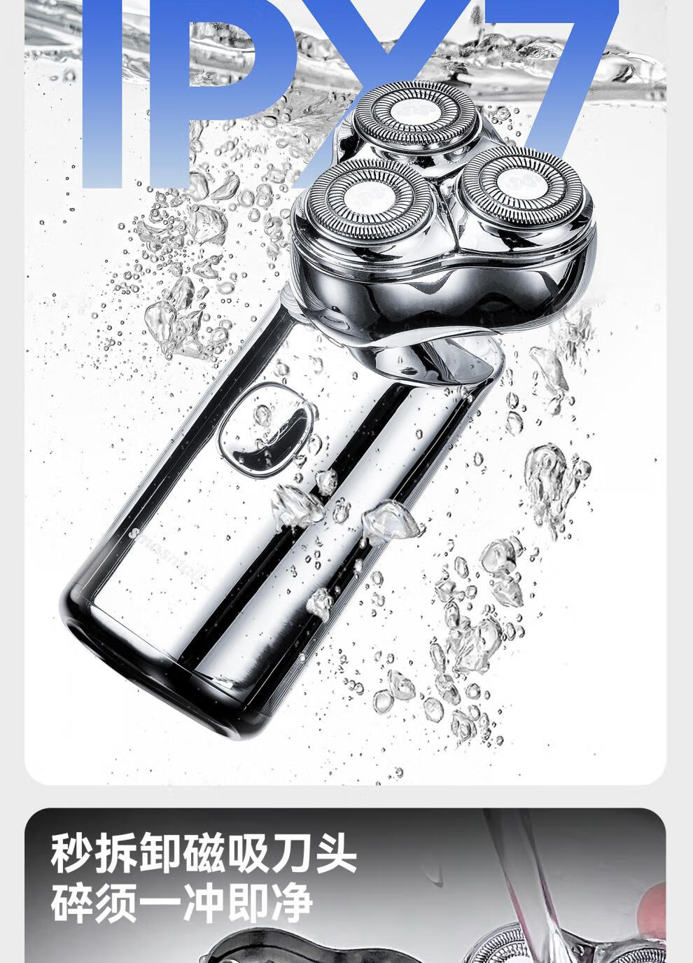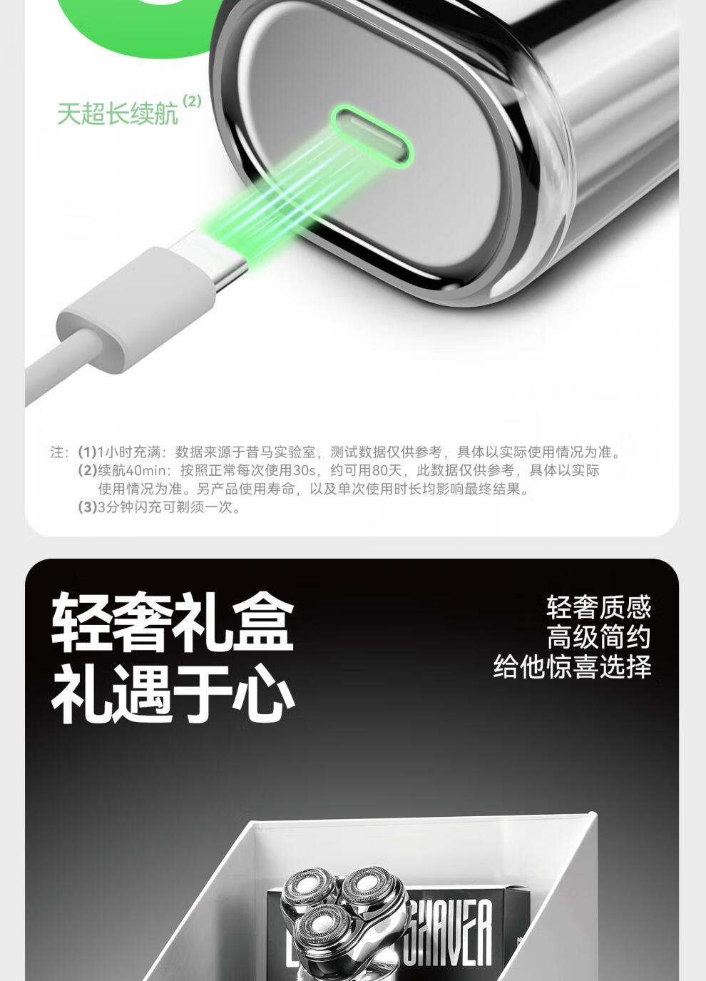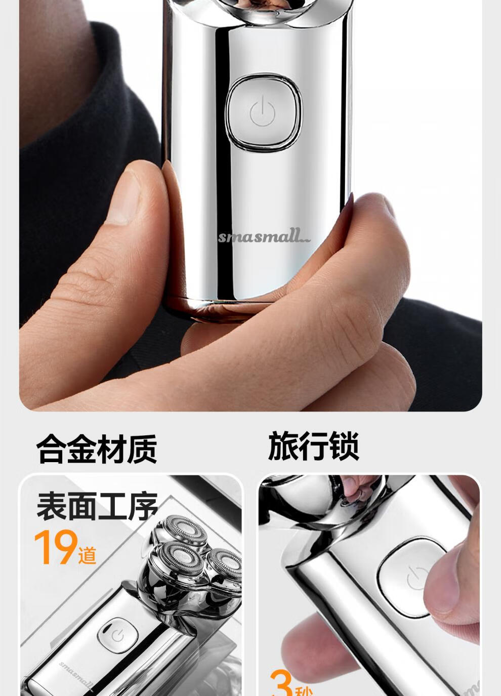 金属机身,一手握持;人体工学设计,贴合手动剃须角度;随心装袋,便携出行
