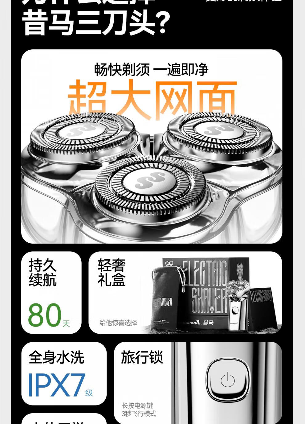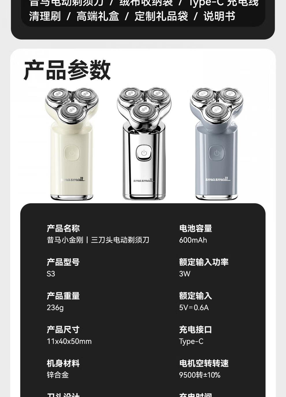 昔马 小金刚三刀头电动剃须刀S3
