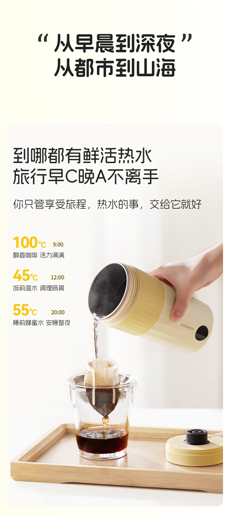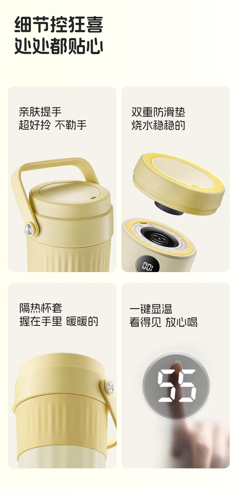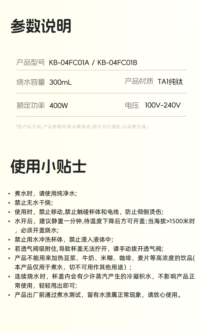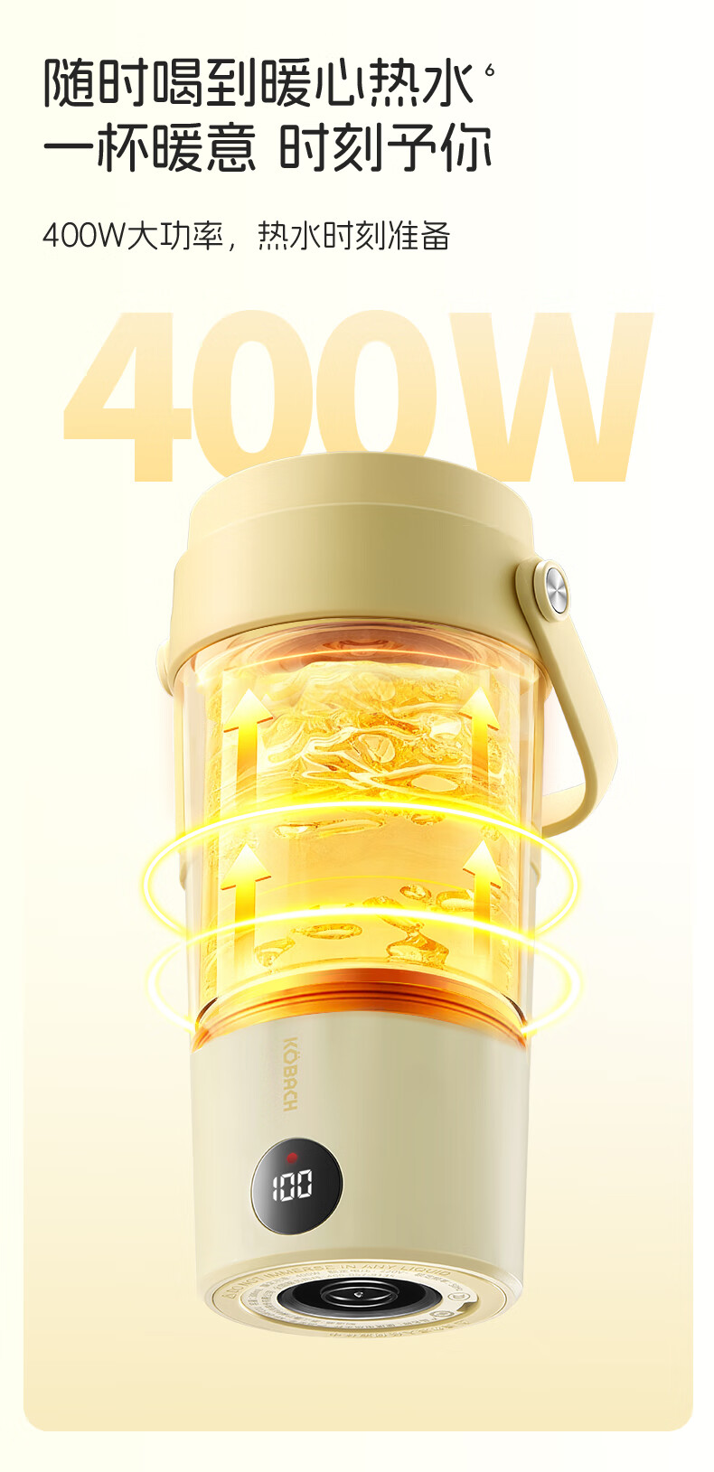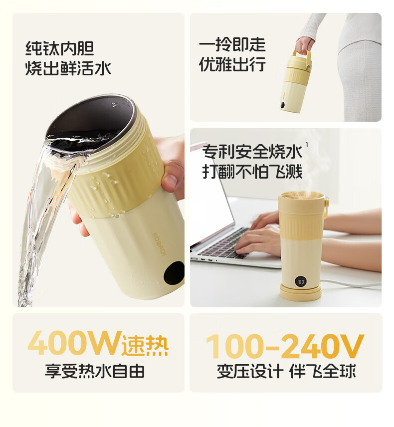 亲肤提手超好拎美美出游好搭子,好看又省力;烧水时自动排气,更安全出行时;400W大功率,热水时刻准备