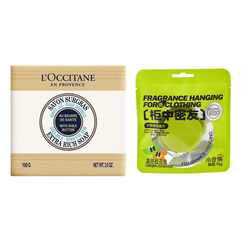 配置清单:欧舒丹乳木果润唇膏4g*1 欧舒丹乳木果护手霜10ml*1 欧舒丹乳木果牛奶味洁肤皂100g*1 小仓熊衣物香氛挂片(龙井桂花香) 欧舒丹精美礼盒礼袋*1