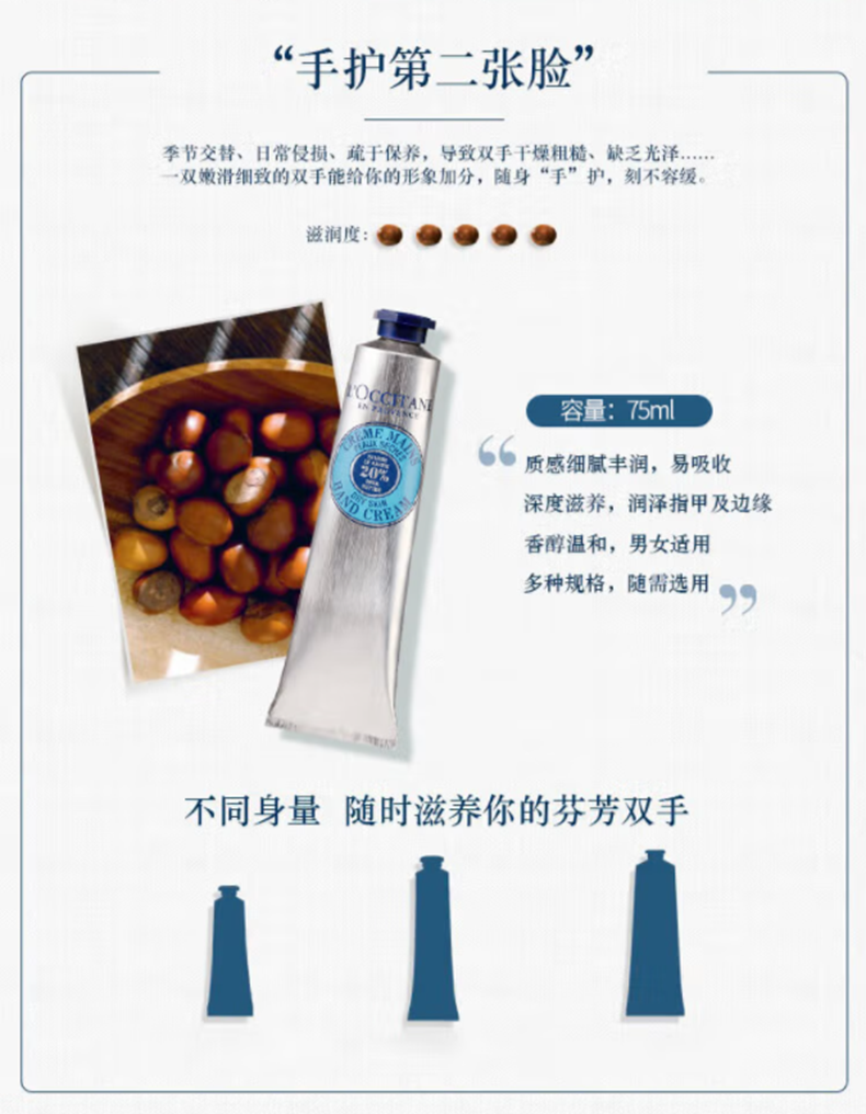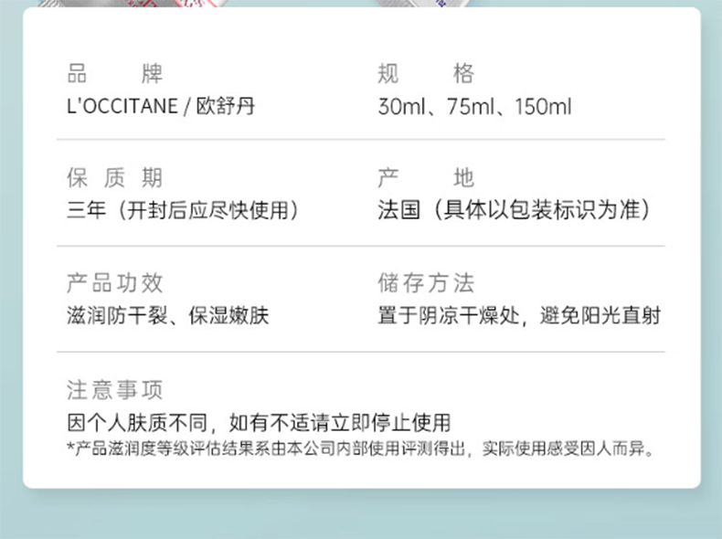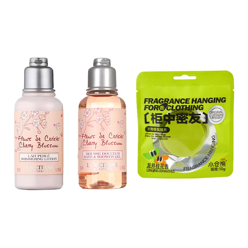 配置清单:欧舒丹滋润保湿香氛护手霜(30ml*2支) 欧舒丹甜蜜樱花香氛沐浴啫喱35ml*1 欧舒丹甜蜜樱花香氛亮采润肤乳35ml*1 小仓熊衣物香氛挂片(龙井桂花香) 欧舒丹精美礼盒礼袋*1