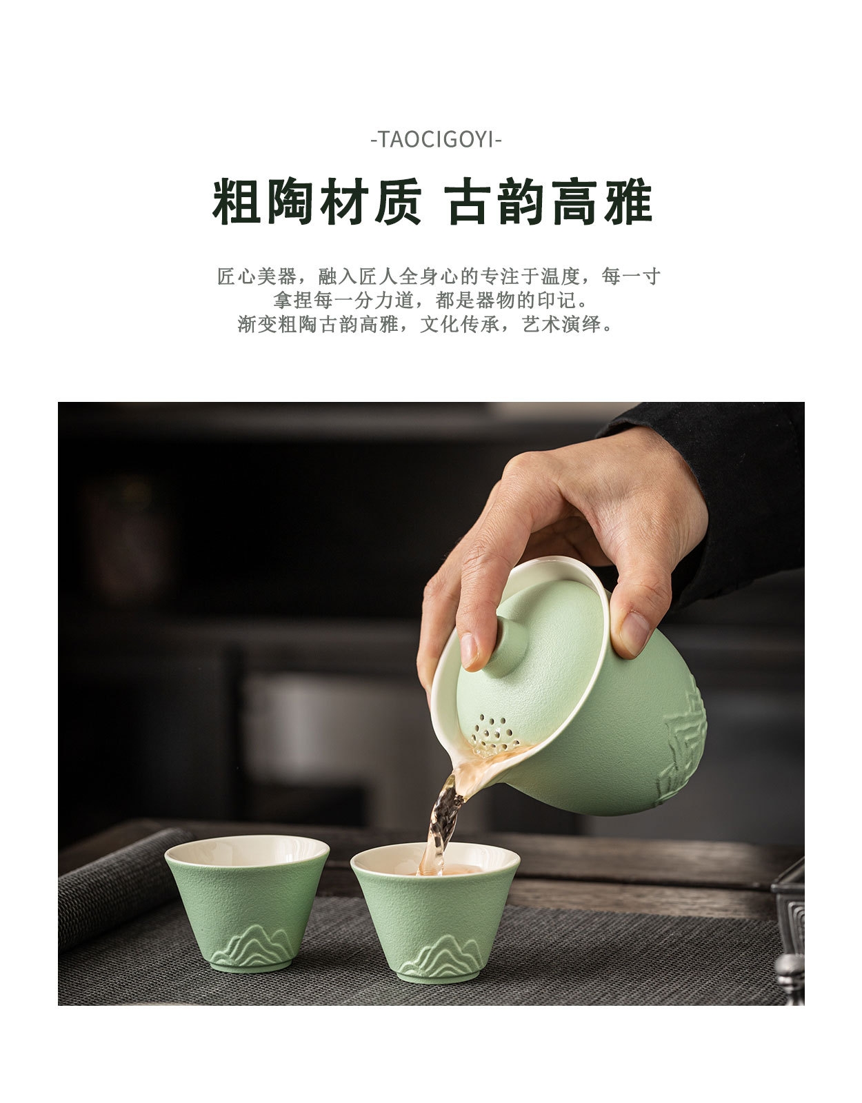 粗陶材质,古韵高雅;渐变粗陶古韵高雅,文化传承;匠心美器,融入匠人全身心的专注于温度