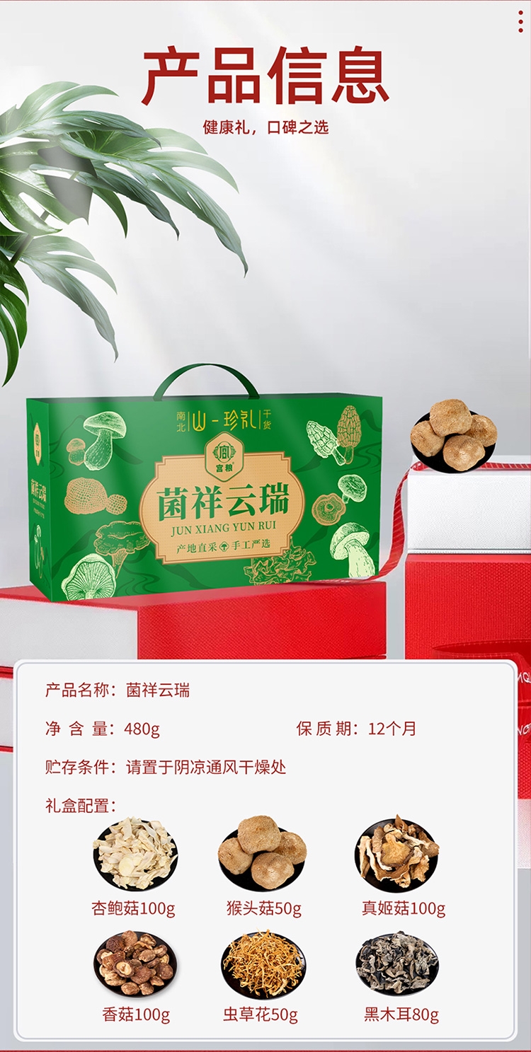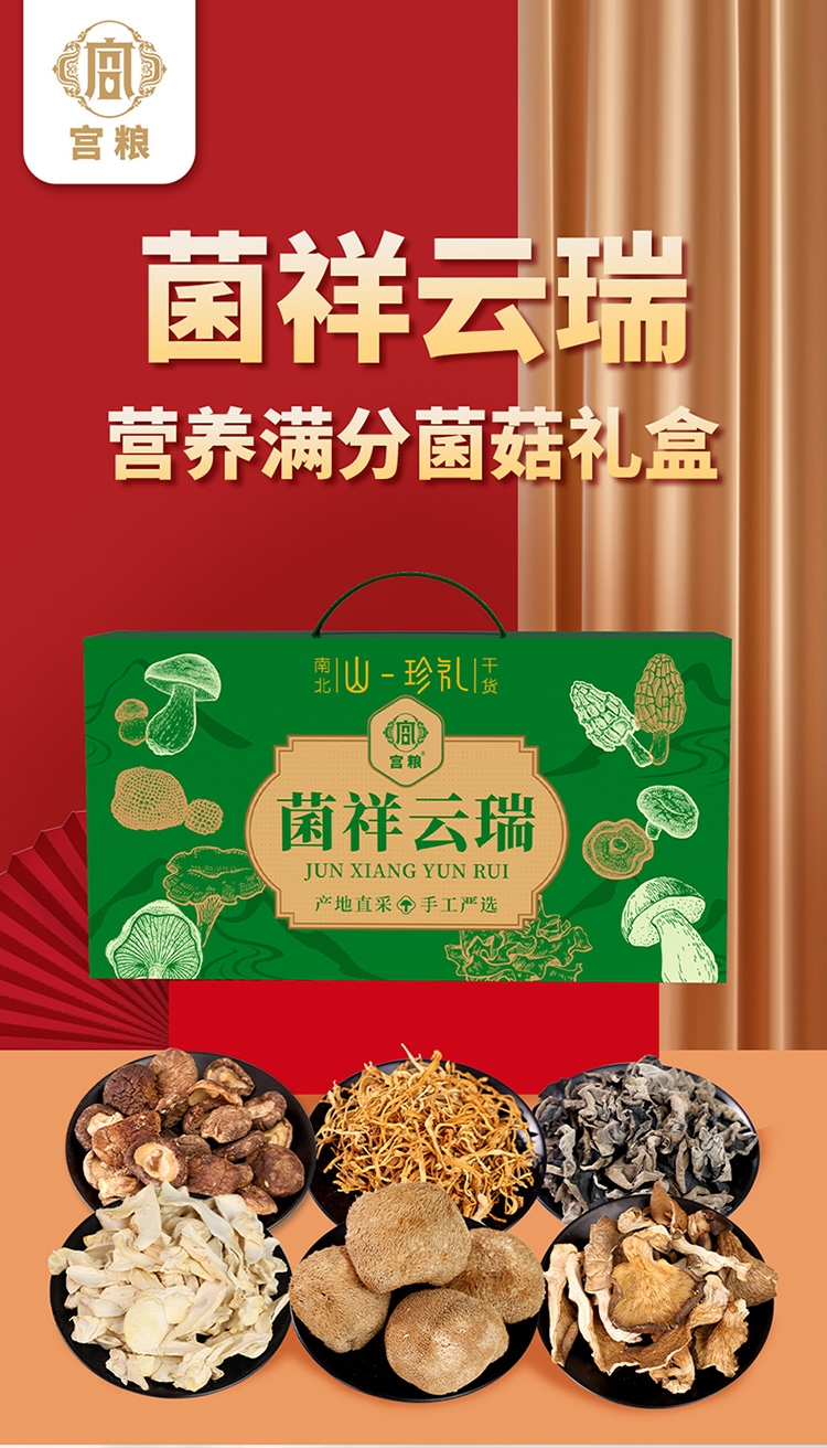 宫粮 南北干货菌菇祥云瑞礼盒480g