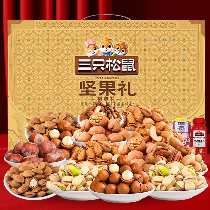 中式配色,大气吉利;定制插画,吉兽传福;坚果礼盒,赠友健康
