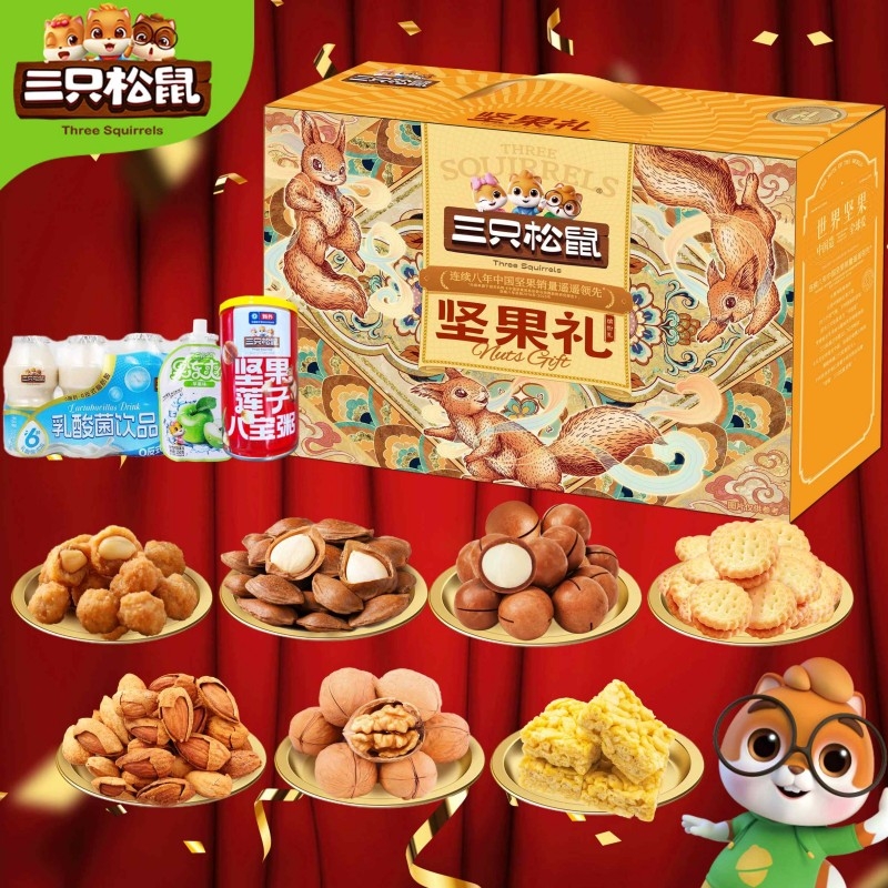 价格相对亲民,性价比高,适合作为年货或节日礼物;礼盒内含的零食种类丰富,数量适中,满足消费者需求;设计感满满的包装,大气高端