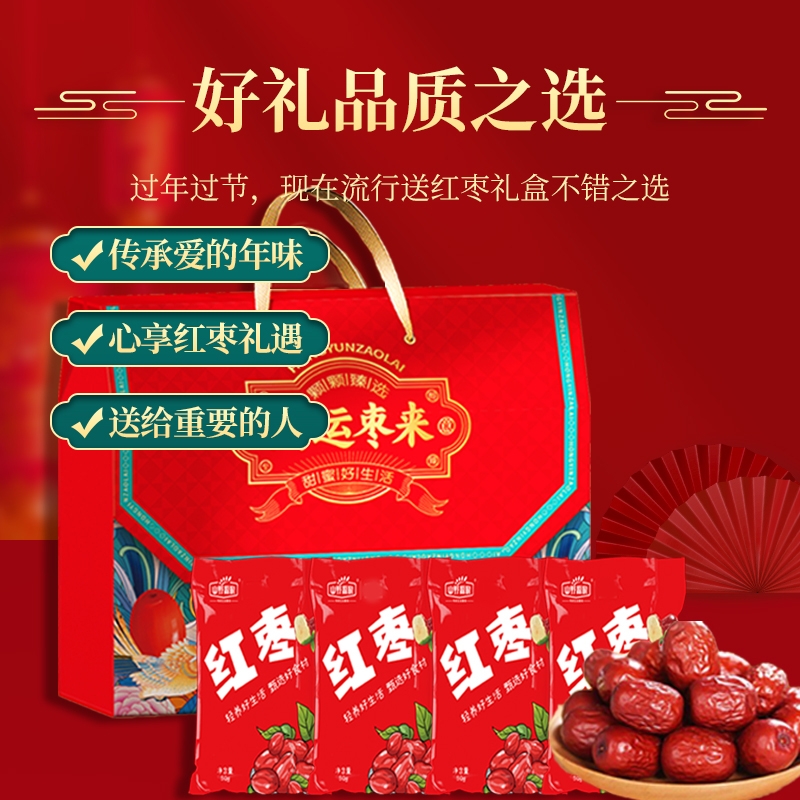 优选新疆若羌红枣;去皮去核免洗即食;肉厚坚实,独立